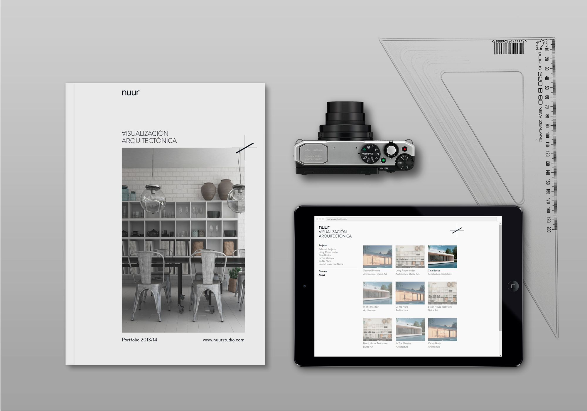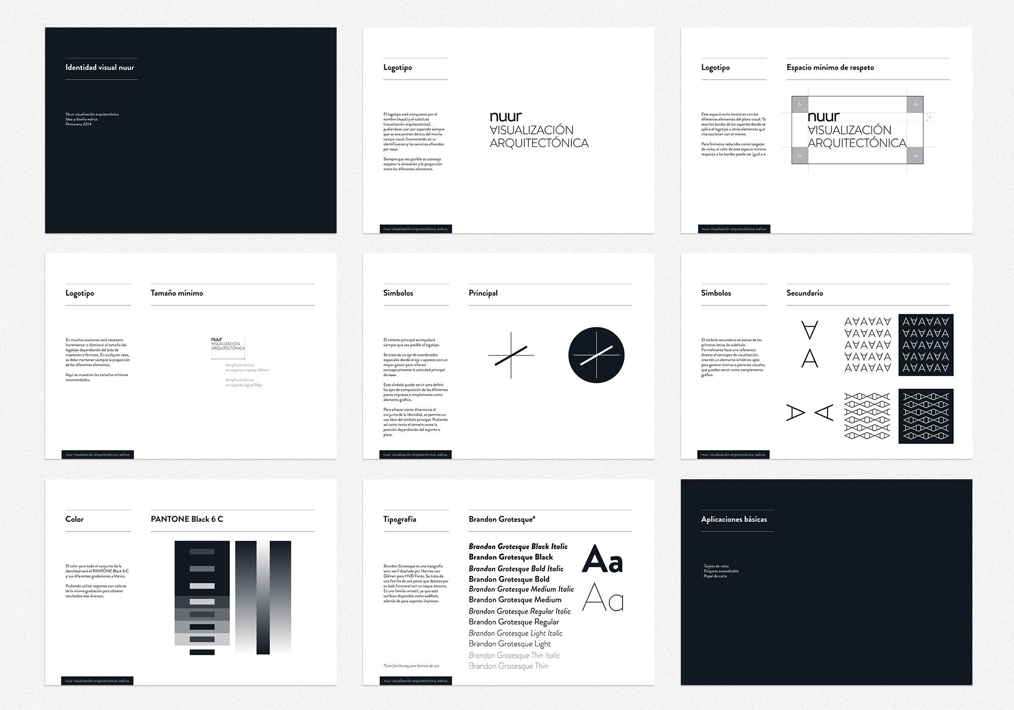 Nuur es un estudio de visualización arquitectónica 3D con base en Mallorca. Hemos buscado crear una identidad visual sofisticada y sostenible a través del uso de formas simples combinadas con una paleta de color monocromática. Siguiendo las mismas pautas para el símbolo, queríamos hacer hincapié sobre la principal actividad del estudio mediante el uso de un eje de coordenadas, donde destacamos la linea que representa la tercera dimensión.