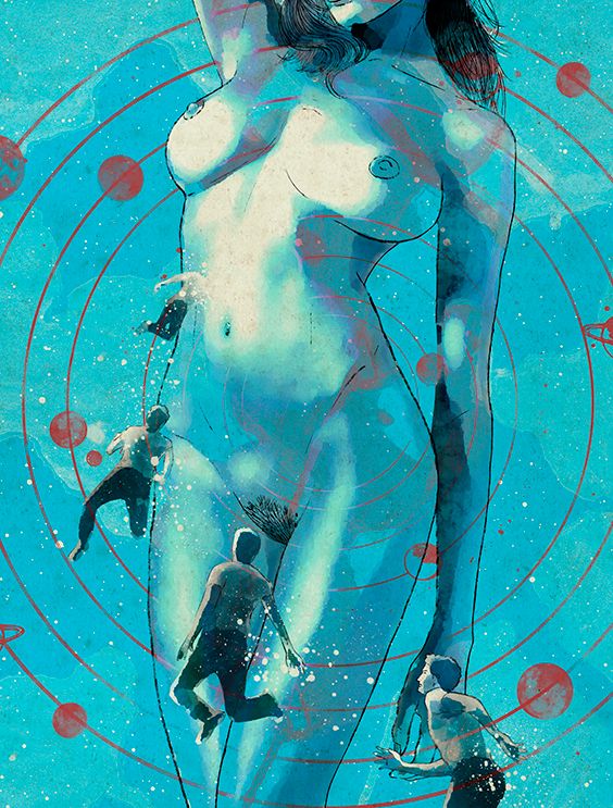 Ilustración inspirada por el tema "Pegado a ti" de Los Planetas y que forma parte del libro+cd, "De viaje por Los Planetas", homenaje al 20 aniversario del lanzamiento de "Super 8", primer LP de la banda granadina.