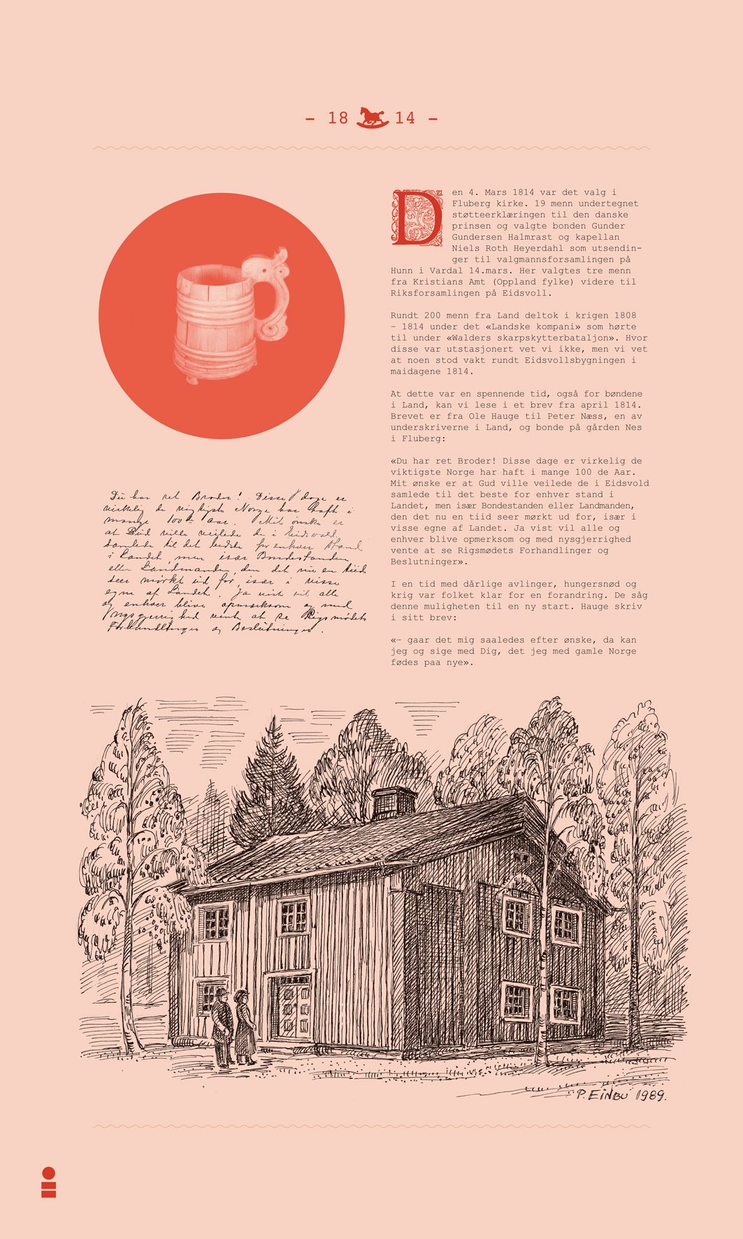 and create this exhibition for the Lands Museum and Hadeland Folkemuseum. The exhibition was divided into four rooms that each represent a decade, 1814, 1905, 1940, 2014.