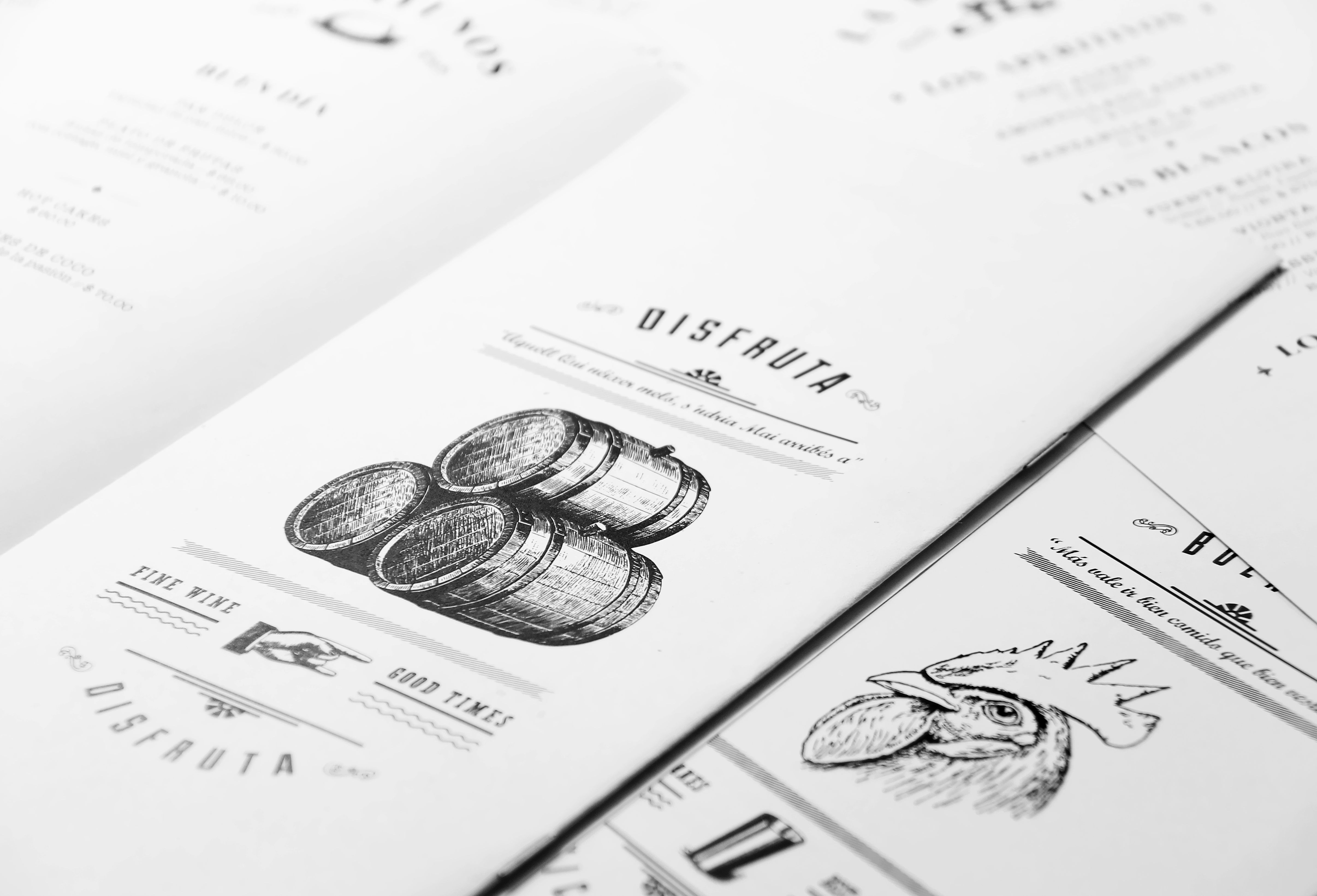 interesante el uso del lettering para la marca y el uso de los grabados, un conjunto gráfico muy chulo!