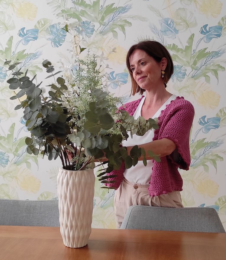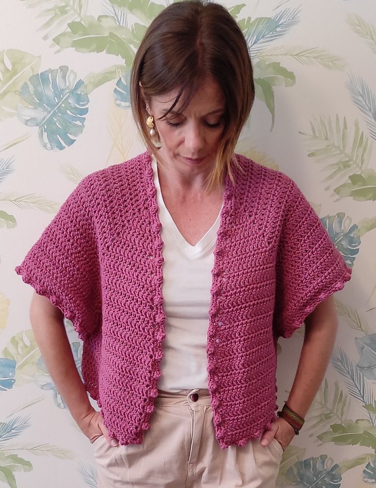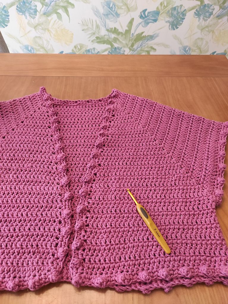 Les presento mi segundo proyecto de prenda top- down , con la adaptación de cuello pico y rematado con el punto " pop-corn" . Elegí un rosa de la marca "Rubí' medium natural y lo tejí con la aguja del 4,5 . En este caso no hice mangas , sólo el canesú . No puedo estar más contenta!!!!!! . Espero les guste . Yo he disfrutado mucho tejiendo .