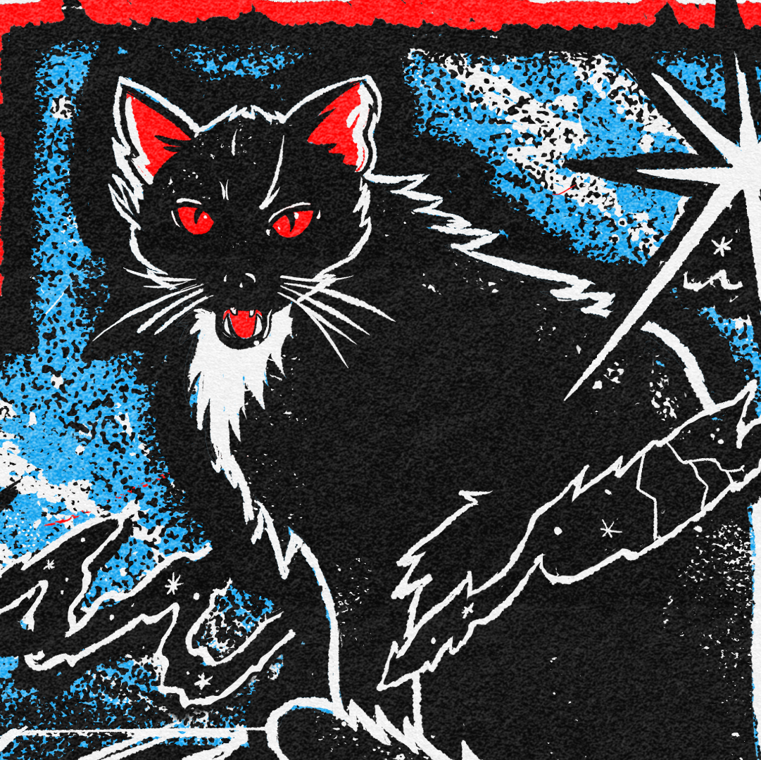 El año pasado pasé un mes memorable jugando con las guitarras y baterías del estudio de Barbi Recanati. A cambio, yo cuidé a sus gatos, Tito y Tita. Tita es una gatita muy tranca y sus días se tratan de esquivar la violencia injustificada de Tito. Un día, Tita se subió a la bandeja y como si ésta le hubiera dado una especie de poder, me clavó los ojos y me mostró los dientes con una actitud nunca antes vista. Saqué una foto de ese momento y hoy lo reinterpreté para este póster.