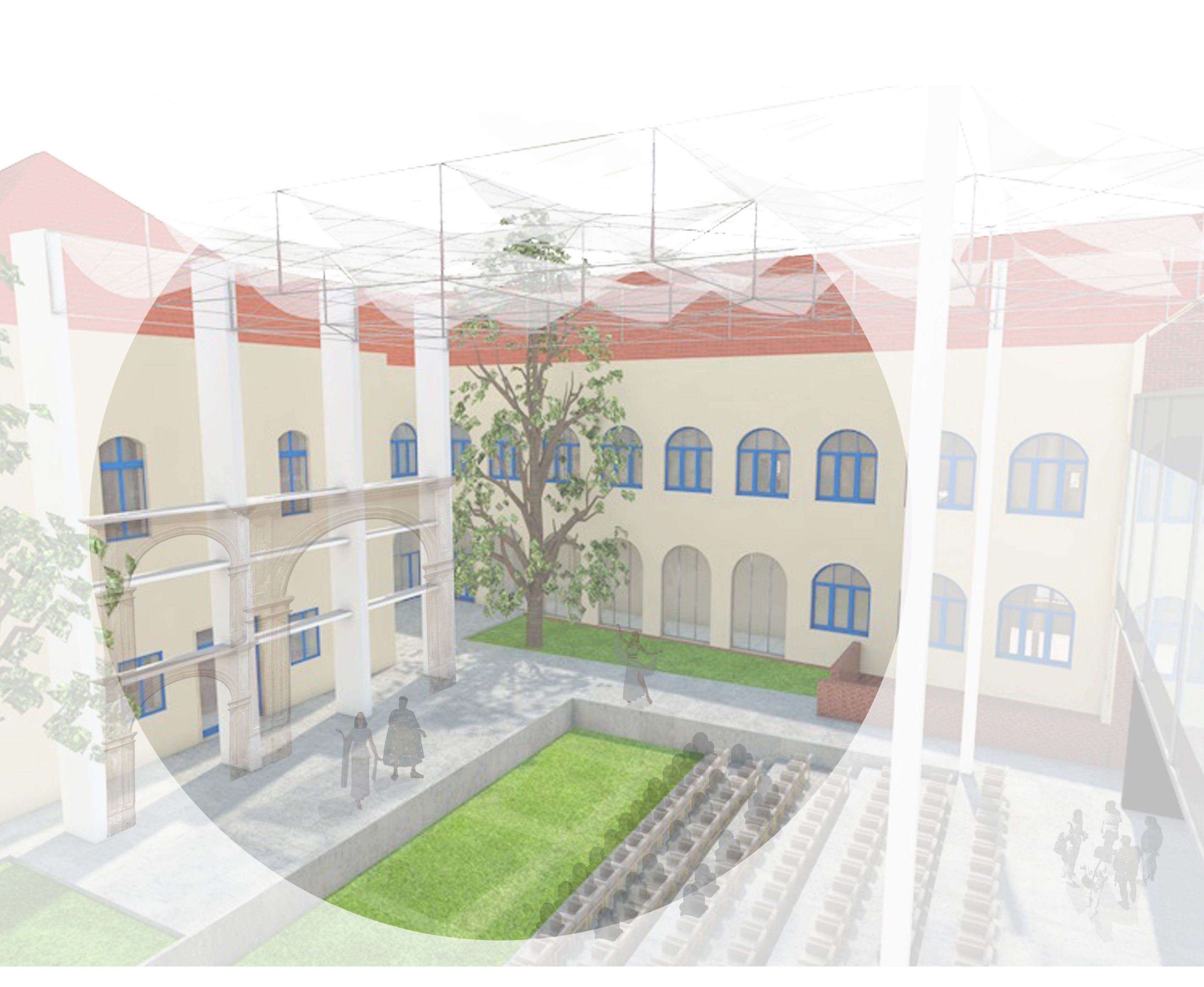 I would turn the gardens behind the old town hall into a communal space and frame it with the inner courtyard of the building. Apart from the time of the performances, the inner courtyard would also be the scene of urban community life.