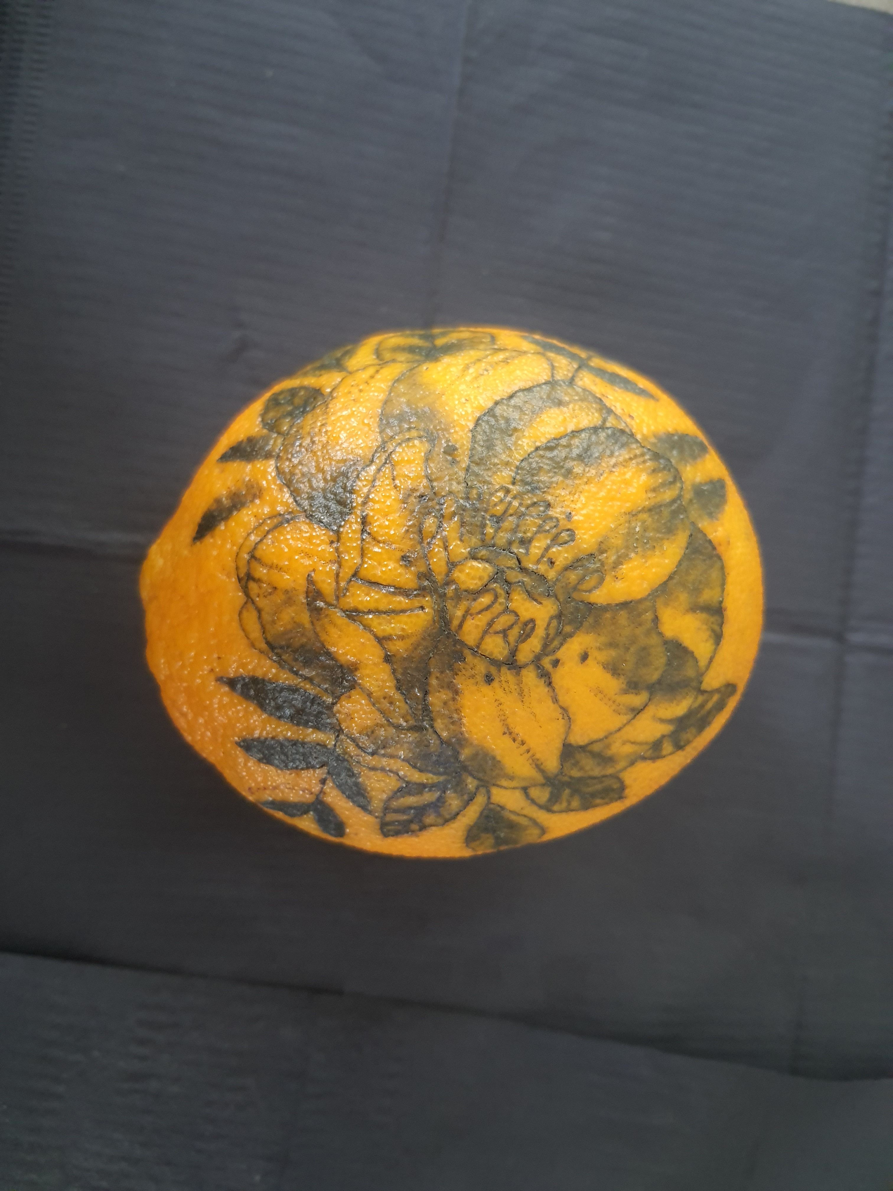 Mein Abschlussprojekt. Es ist so ungewohnt auf eine Orange zu stechen. Aber man gewöhnt sich schnell daran. Ich liebe es wie die Blätter geworden sind.