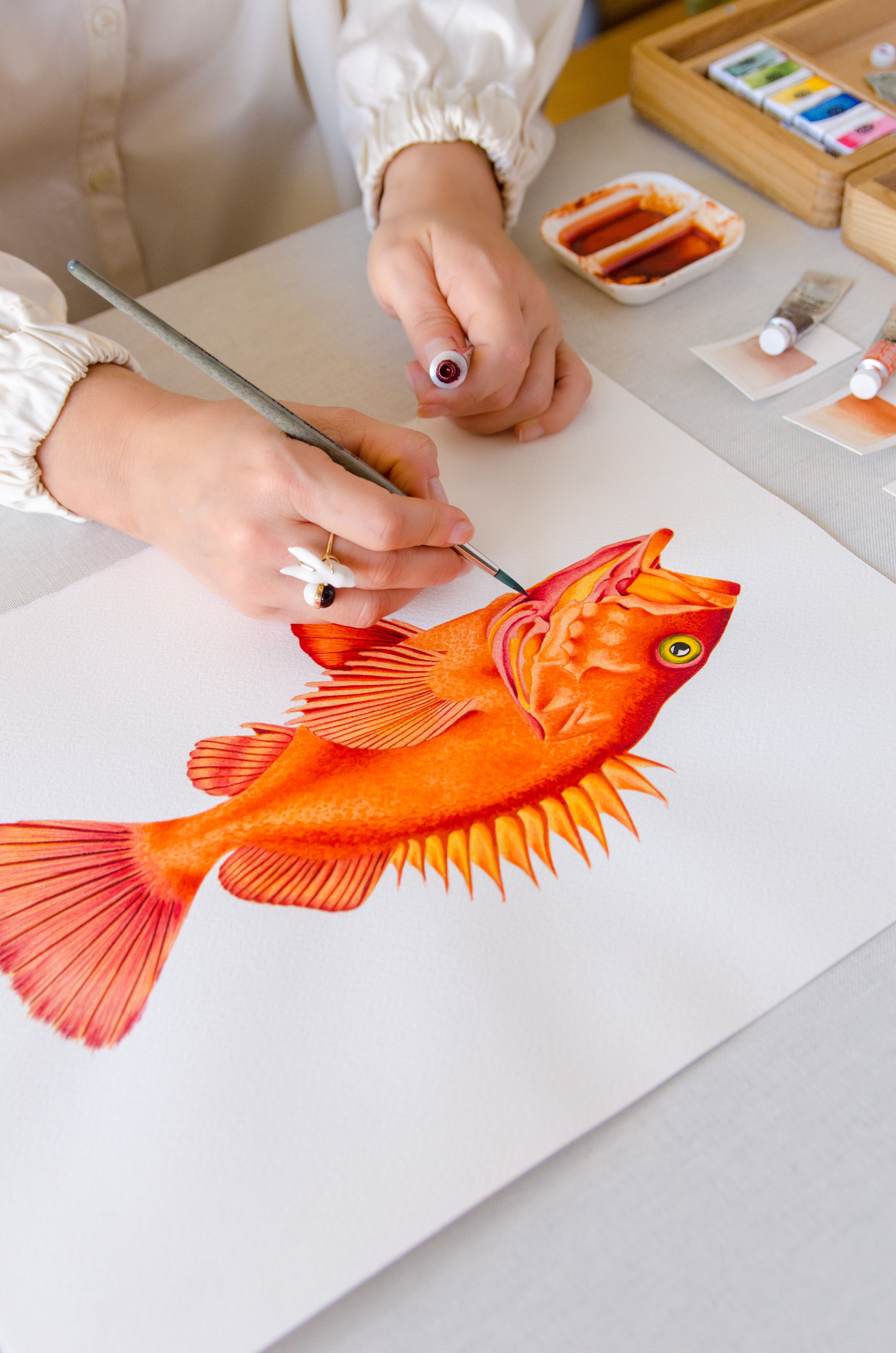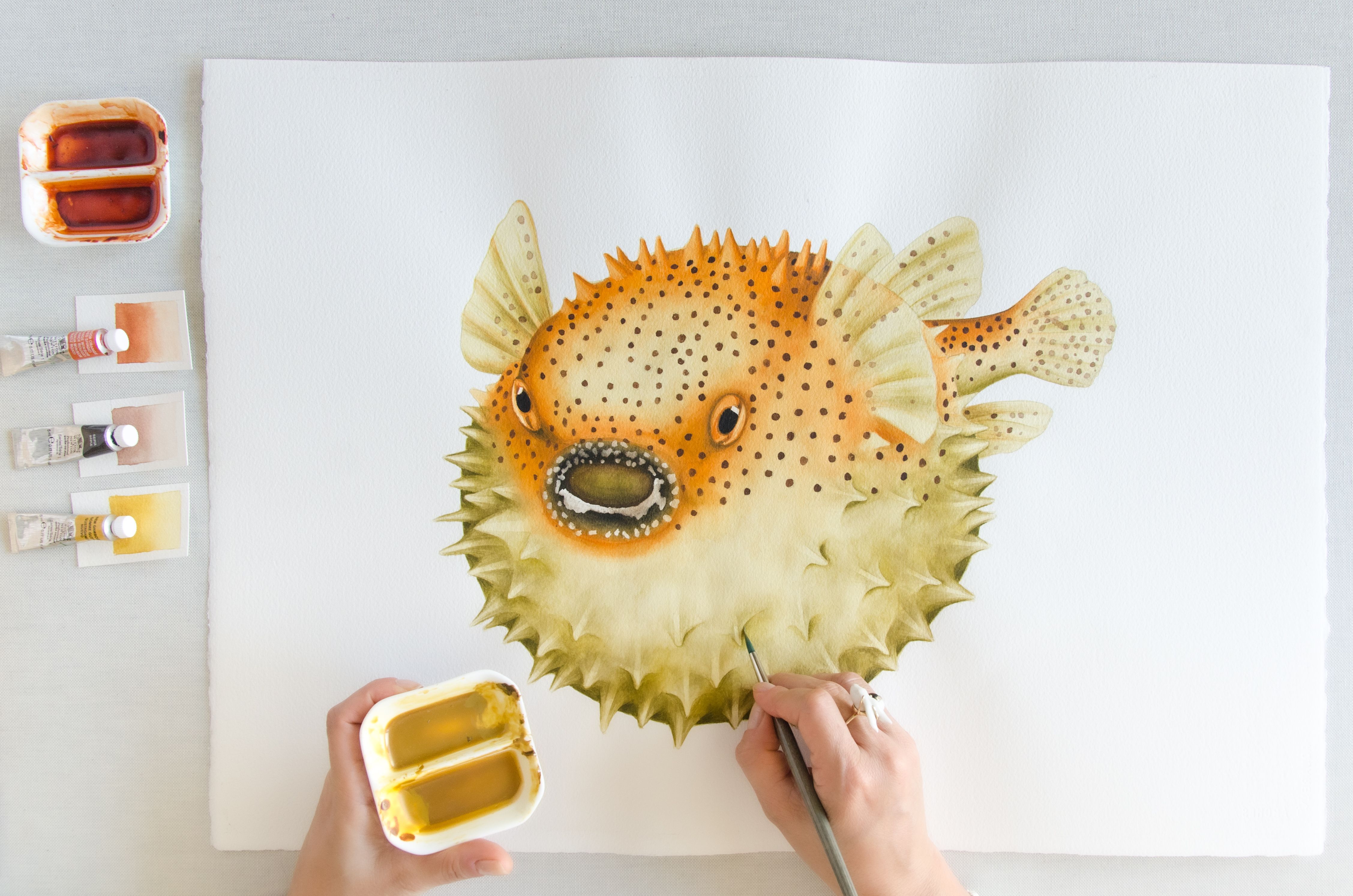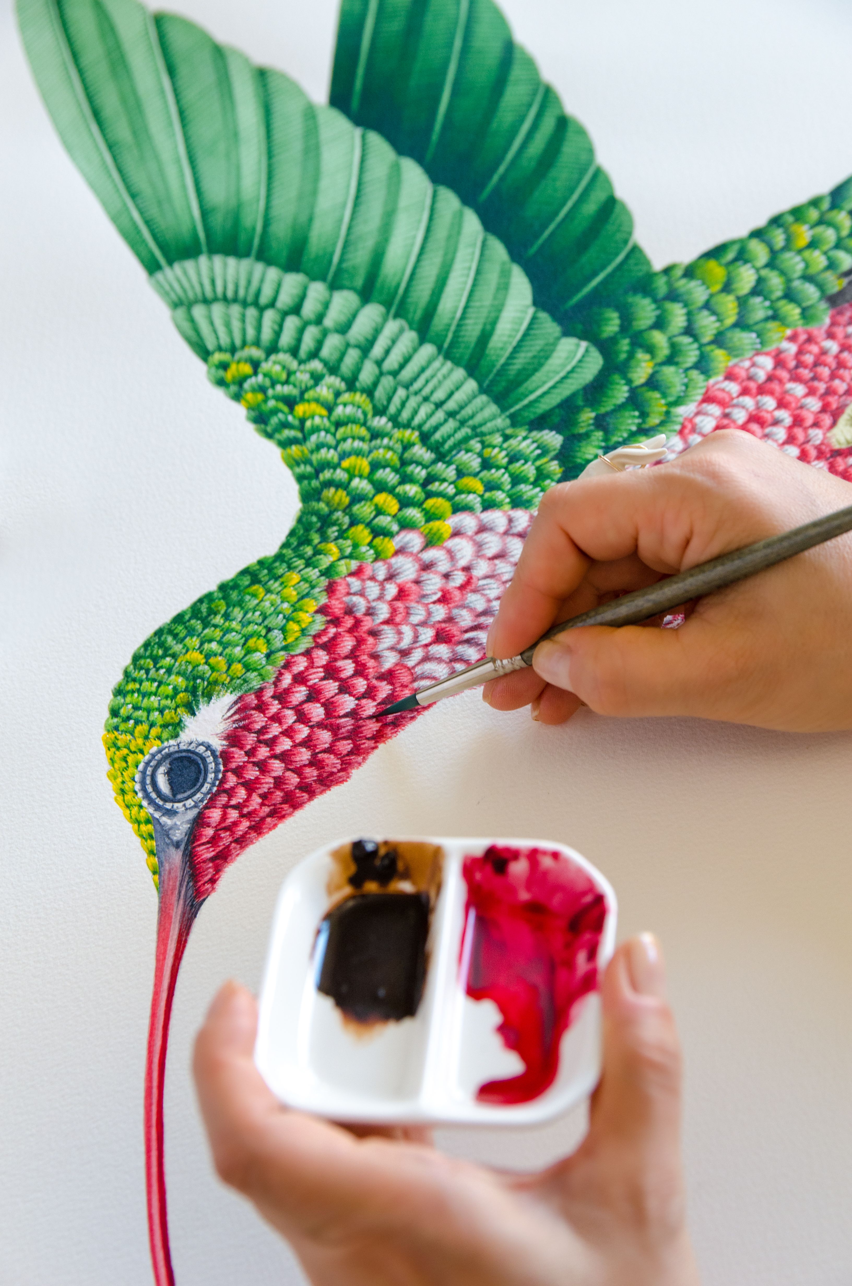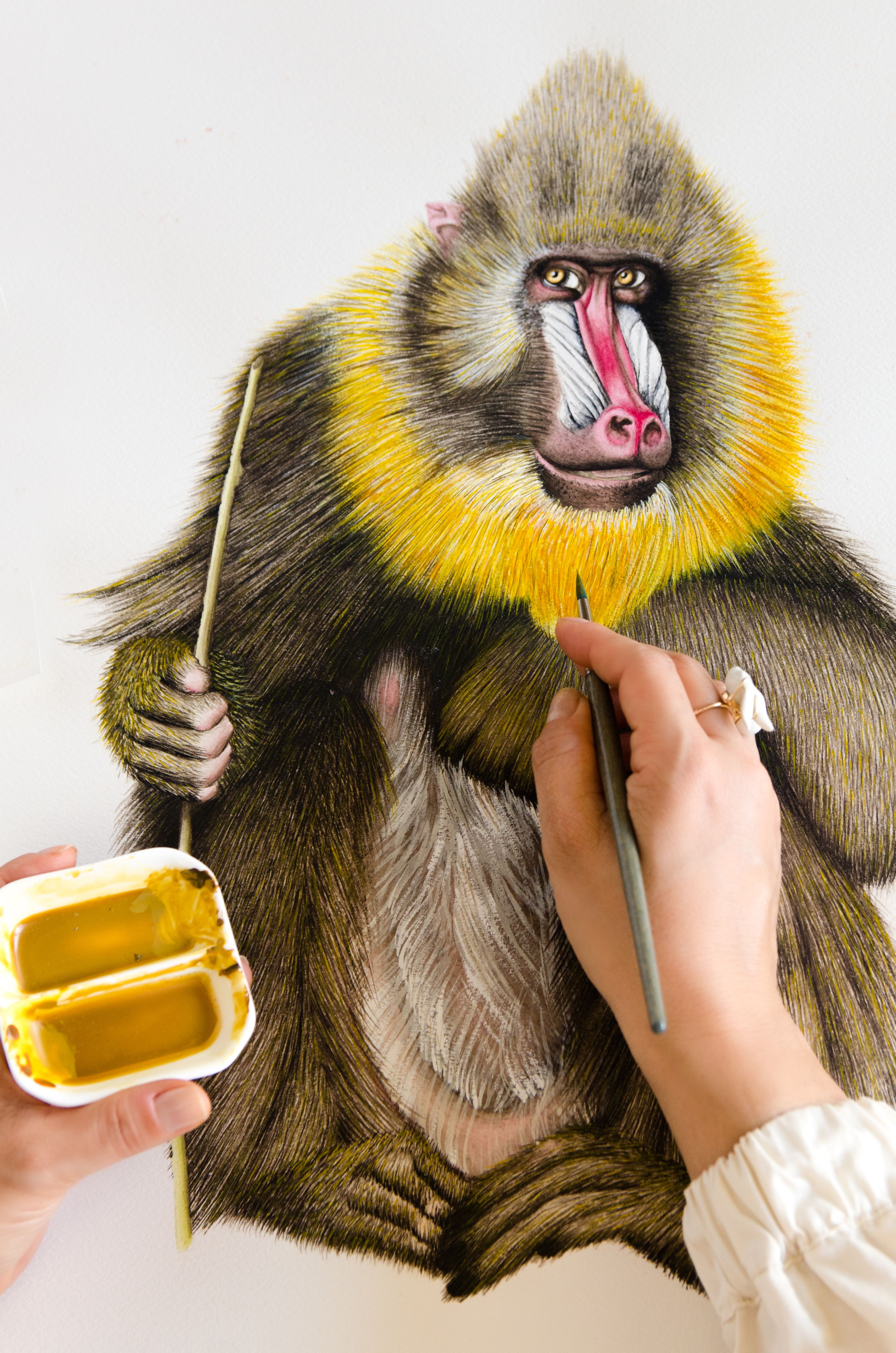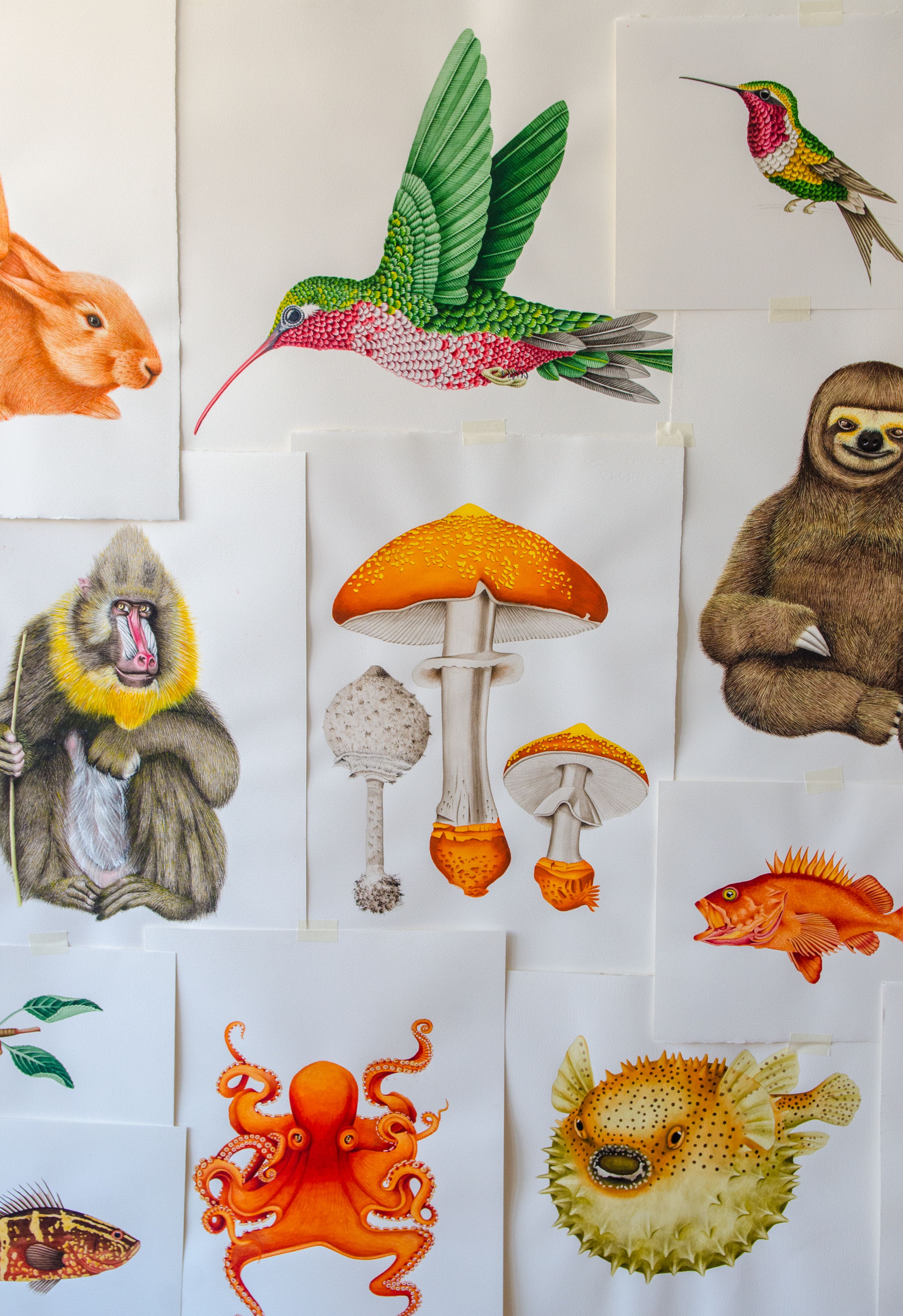 Ellas eligieron los motivos que querían que dibujase, y sobre esos motivos fui creando primero las composiciones de cada animal o elemento a ilustrar. Una vez dado el OK a las ilustraciones, las ilustré en un tamaño lo suficientemente grande para que posteriormente, al digitalizarlas, pudiesen usarlas con alta calidad sobre los elementos en los que se iban a reproducir.