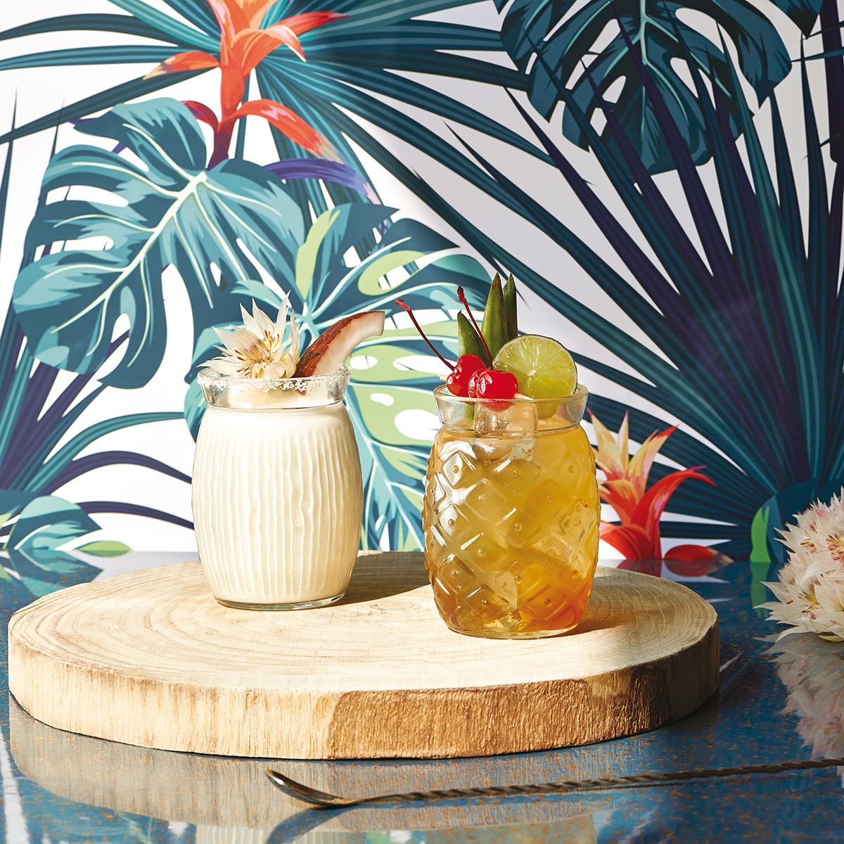 Las tendencias en el mundo de los cócteles están en constante evolución, especialmente en cuanto a los temas, y esto inspiró la colección hawaiana Tiki. Esto, junto con el cambio de hábitos de los consumidores, que buscan cócteles sin alcohol, saludables y donde las frutas y los jugos ocupan un lugar destacado, nos permite crear productos que satisfagan estas tendencias.