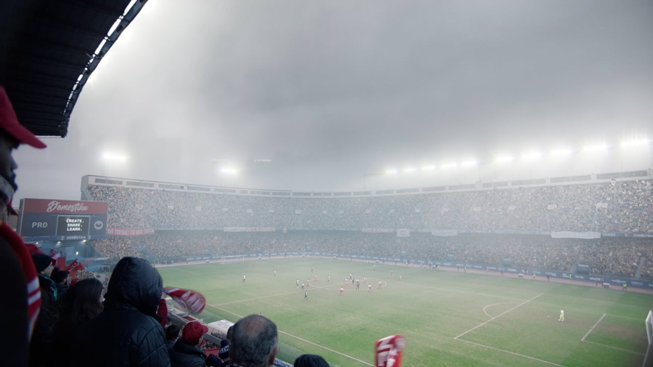 Here is my integration of the crowd elements and cleanup of the main sign on the left and the upper grand stand signage.