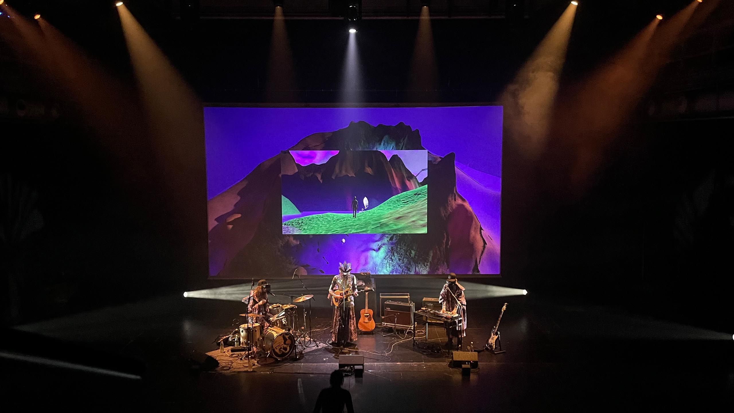 How can a project with so many artistic disciplines become a visually satisfying entirety? How can literature and live music harmonize with a virtual world? What does a future look like in which we ourselves no longer exist? The Moby Digg design team addressed these questions with a collective and open-ended approach. All visual elements of the performance were created in close collaboration and consultation with the Angelau Aux Collective and the video artist Susanne Steinmassl.