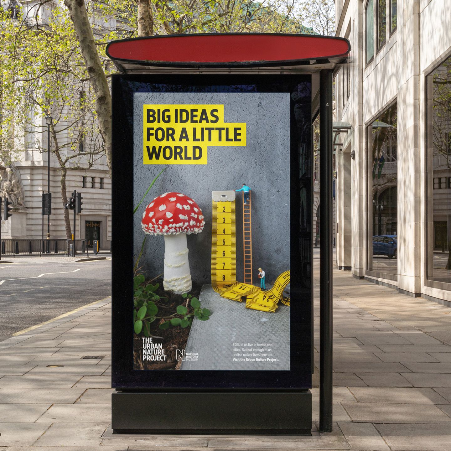 We then paired Slinkachu’s ‘double-take’ imagery with an arresting design toolkit that took the current Museum house-style into more campaigning territory. By using the Museum’s font in its boldest weight, a yellow, black and white livery and short, punchy sentences our aim is to grab the attention of visitors and passers-by, by all means necessary.