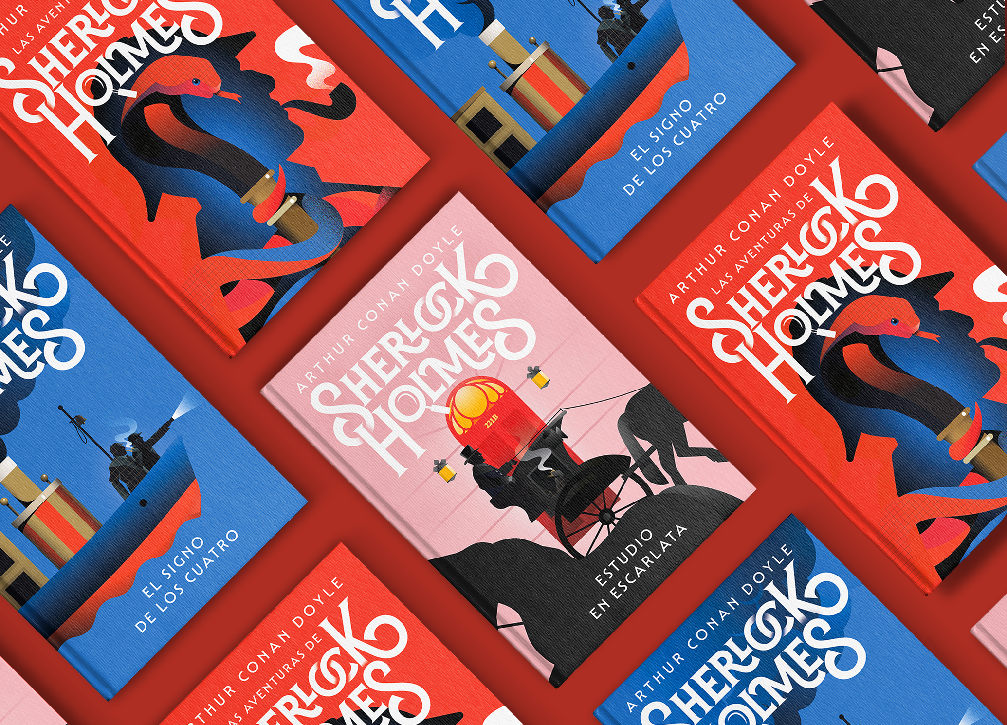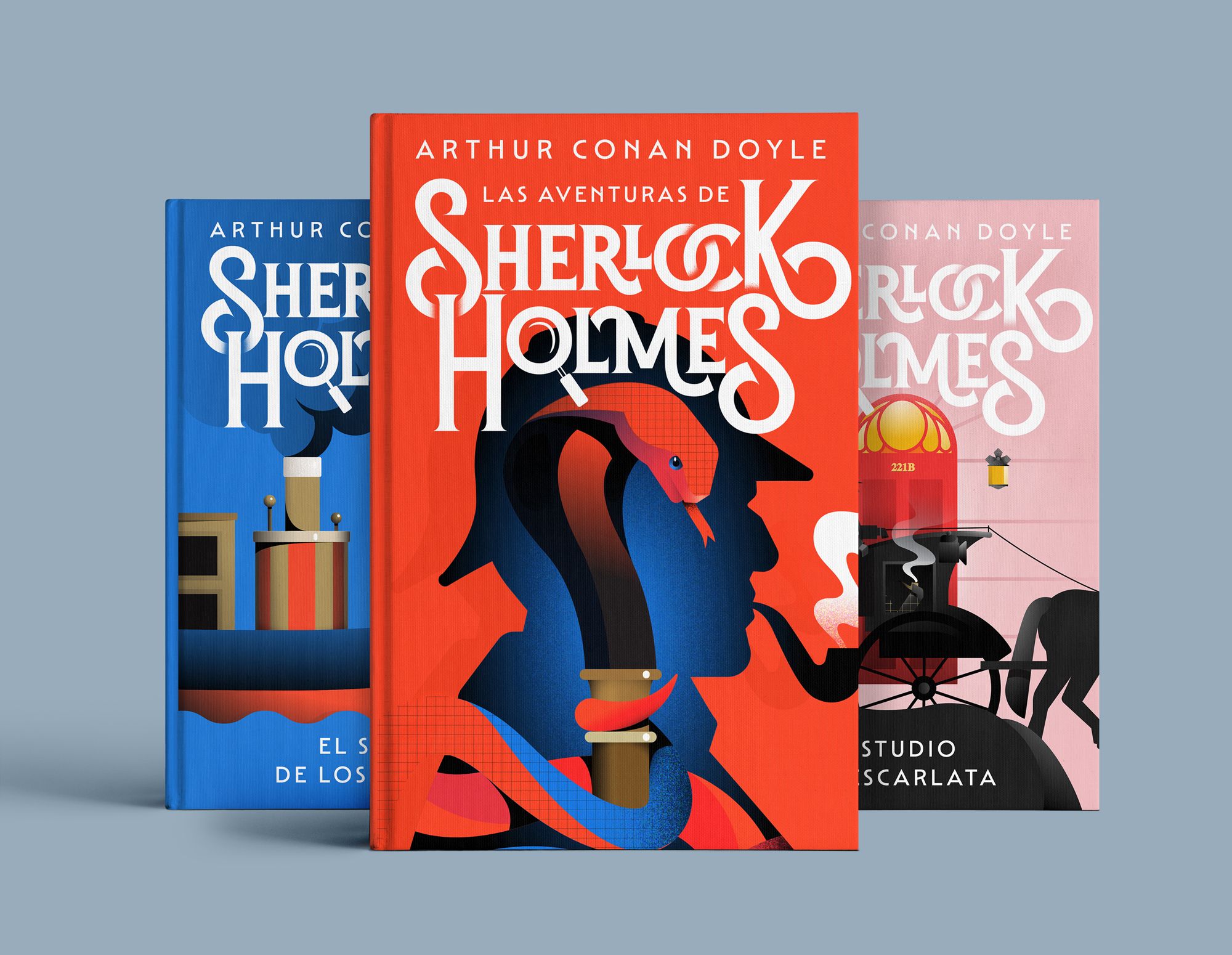 Fue un placer diseñar las portadas de los tres primeros libros de la serie española «Sherlock Holmes». En colaboración con Wete Studio .
