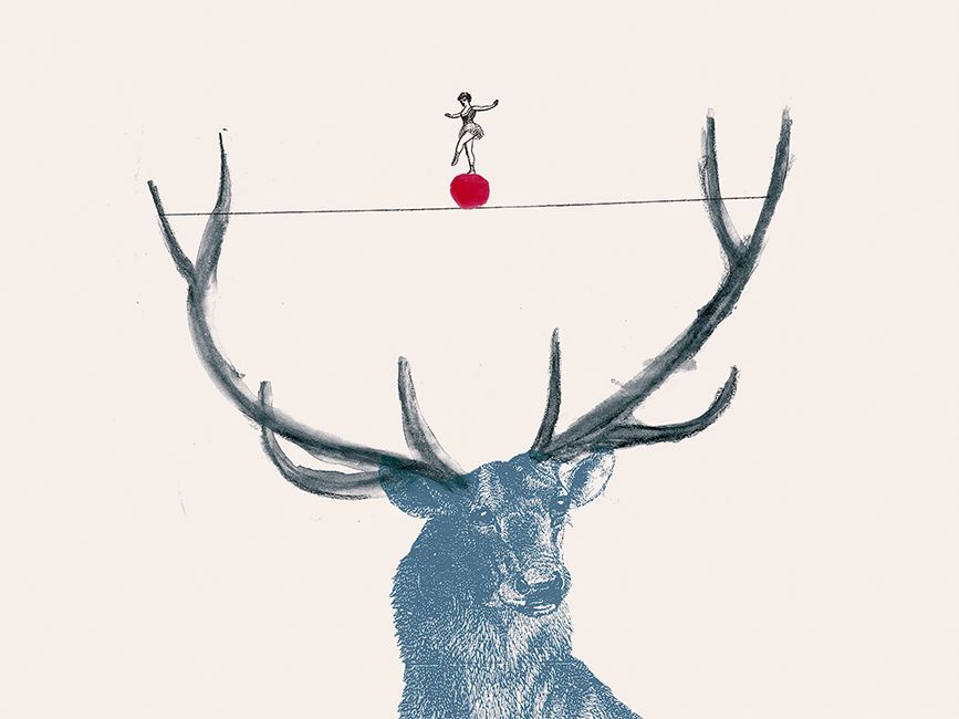 el último con ese juego "circense", que pende de un hilo, sobre la cabeza de ciervo me paece fascinante en relación a la vida de estos animales con la caza, sinceramente, no sé si tratabas de plantear este tema en él, pero al verlo me ha parecido una lectura de conceptos magnífica.