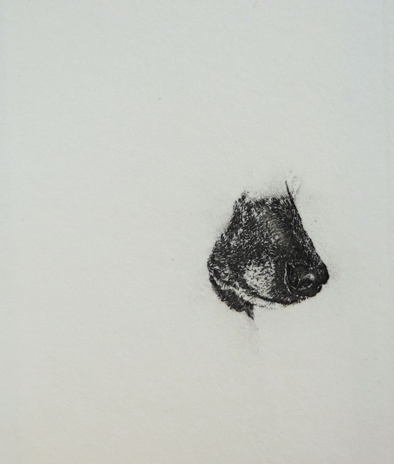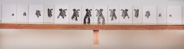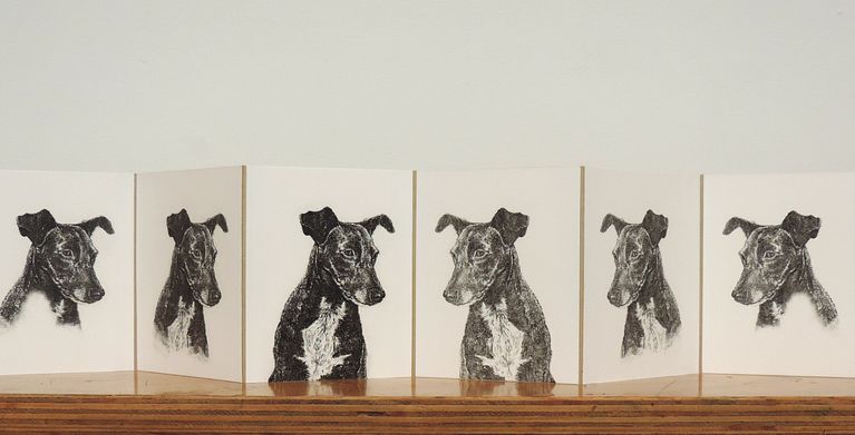 En éste libro, experimentando con el proceso de entintado y estampado, en dónde luego de estampar la plancha sobre papel, a su vez saco una estampa de ésta, creando un reflejo más claro, una huella de la huella. Usando la estructura de encuadernación de acordeón, en dónde al estar abierto el libro se pueden ver todas las páginas, busco que la figura, al verse a si misma, empieza a desvanecerse, a desaparecer en su propio reflejo.