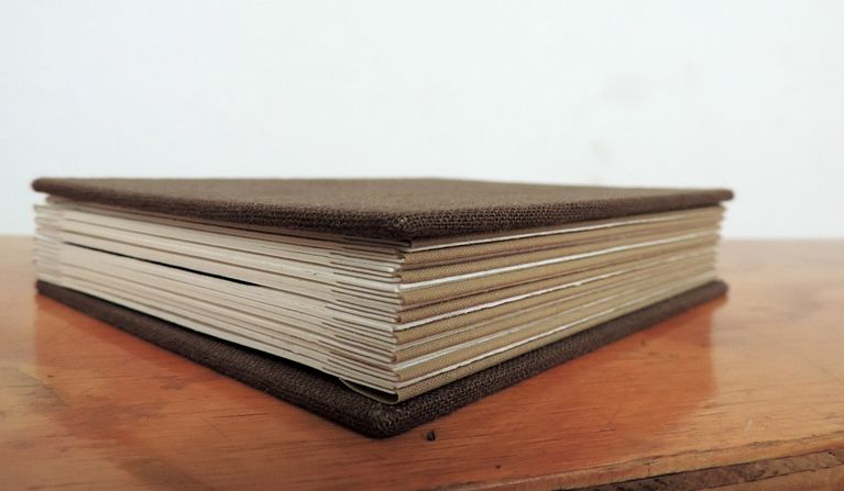 "Almendra" es un libro de artista hecho con estampas de un grabado en aguafuerte, en estructura de acordeón.