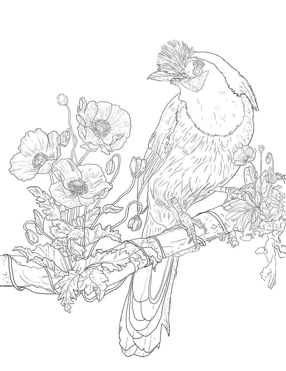 ¡Cada paso de tu proceso se ve tan hermoso! Me encanta la forma en que el color de las flores se relaciona con el pájaro, ¡y tu línea de trabajo es impresionante!