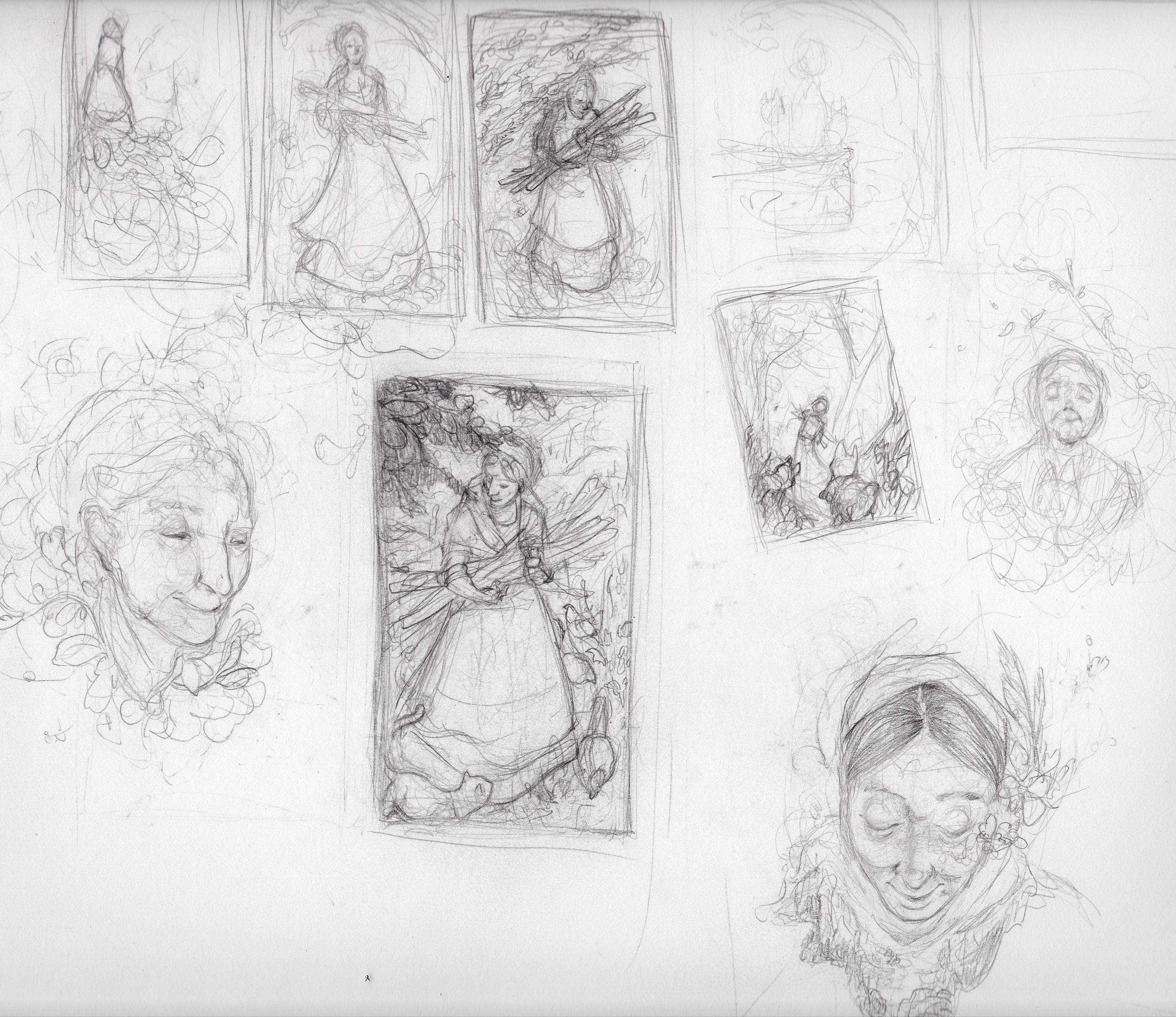 Below you'll find the original graphite drawing I used for the linework base. I always offer a bit of open area to explore possibilities digitally. I find its important to add guidance with line, but never diminish possibility through too much detail.