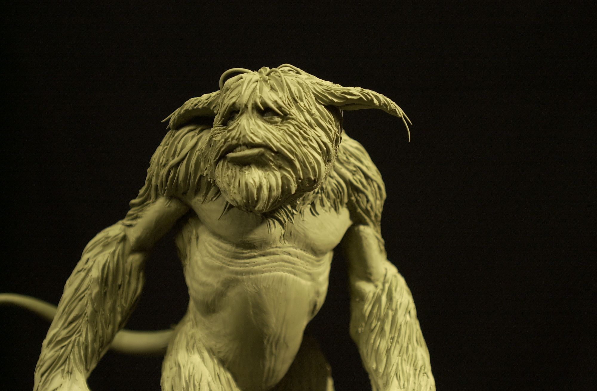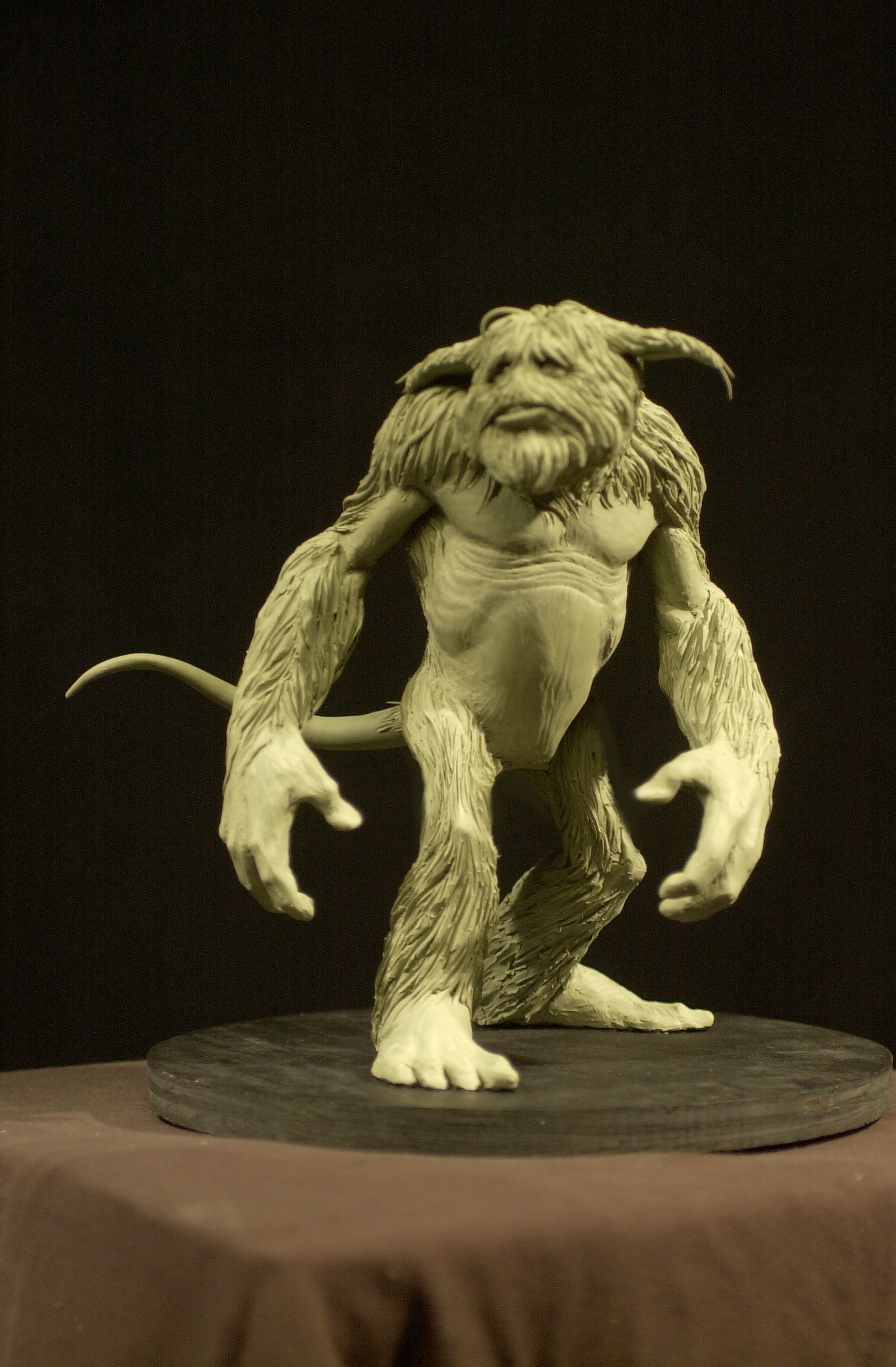 I was tapped by Stan Winston Studio in 1999 to create a maquette of a creature for an in-house film they were working on called "Me and My Monster". It was a charming, E.T.-like story where a boy befriends the monster he's afraid of that lives under his bed. I decided to take a lumbering, oafish direction on the beast, making him shaggy and kind of cute. Unfortunately, the great Stan Winston died before this film could come to fruition, which affected the effects industry tremendously.