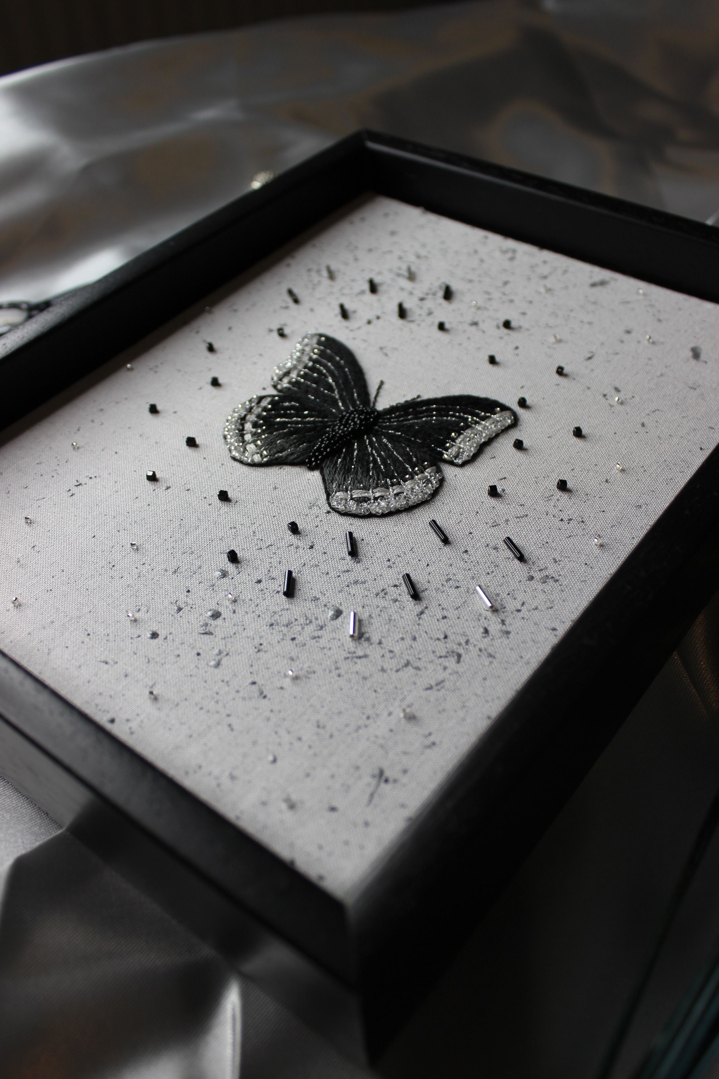 My day to day style is quite dark in colour and so I wanted to start showing a reflection of me in my pieces. This piece allowed me to show my favourite colour black with a hint of white sparkle. It was also the first time I'd experimented with paint.