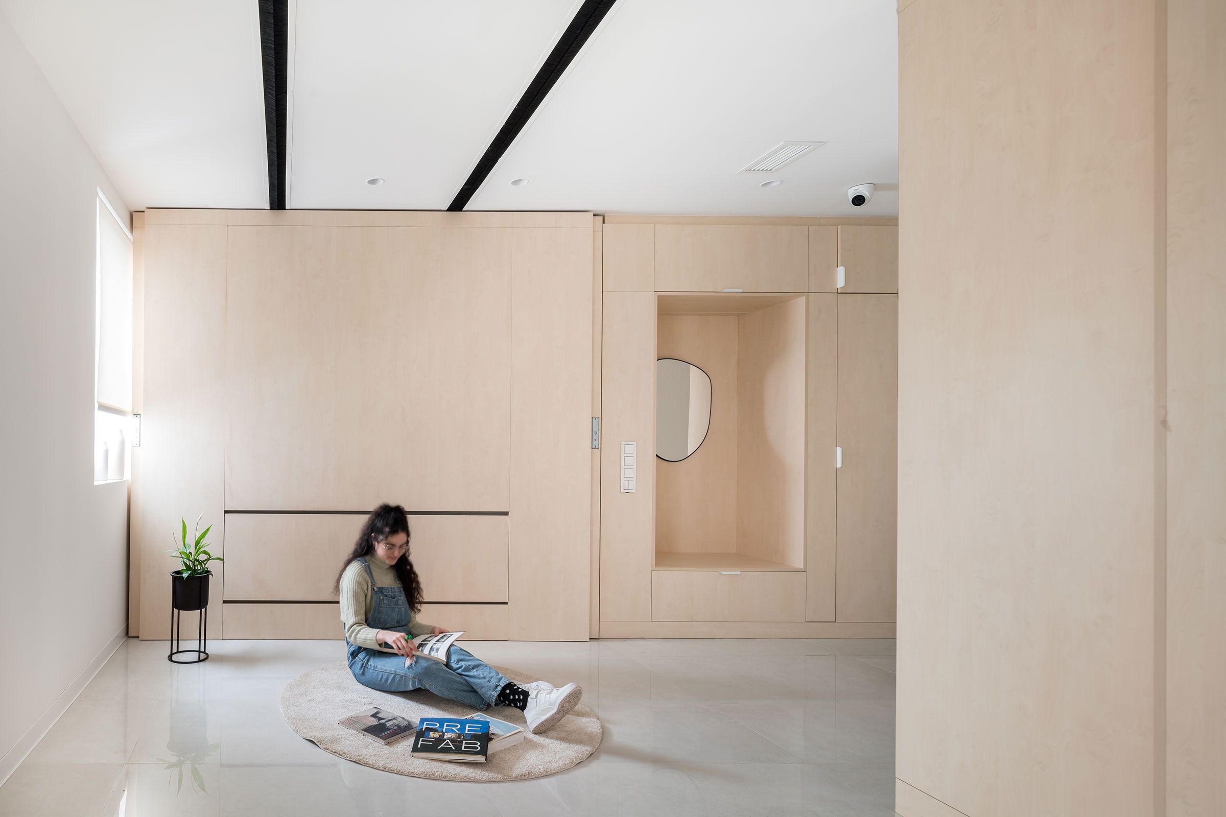 Thanks to its design, technology and its own robotic furniture system, BEYOME allows, in an apartment like this one, to double the living area from 45m2 useful to 90m2 functional.