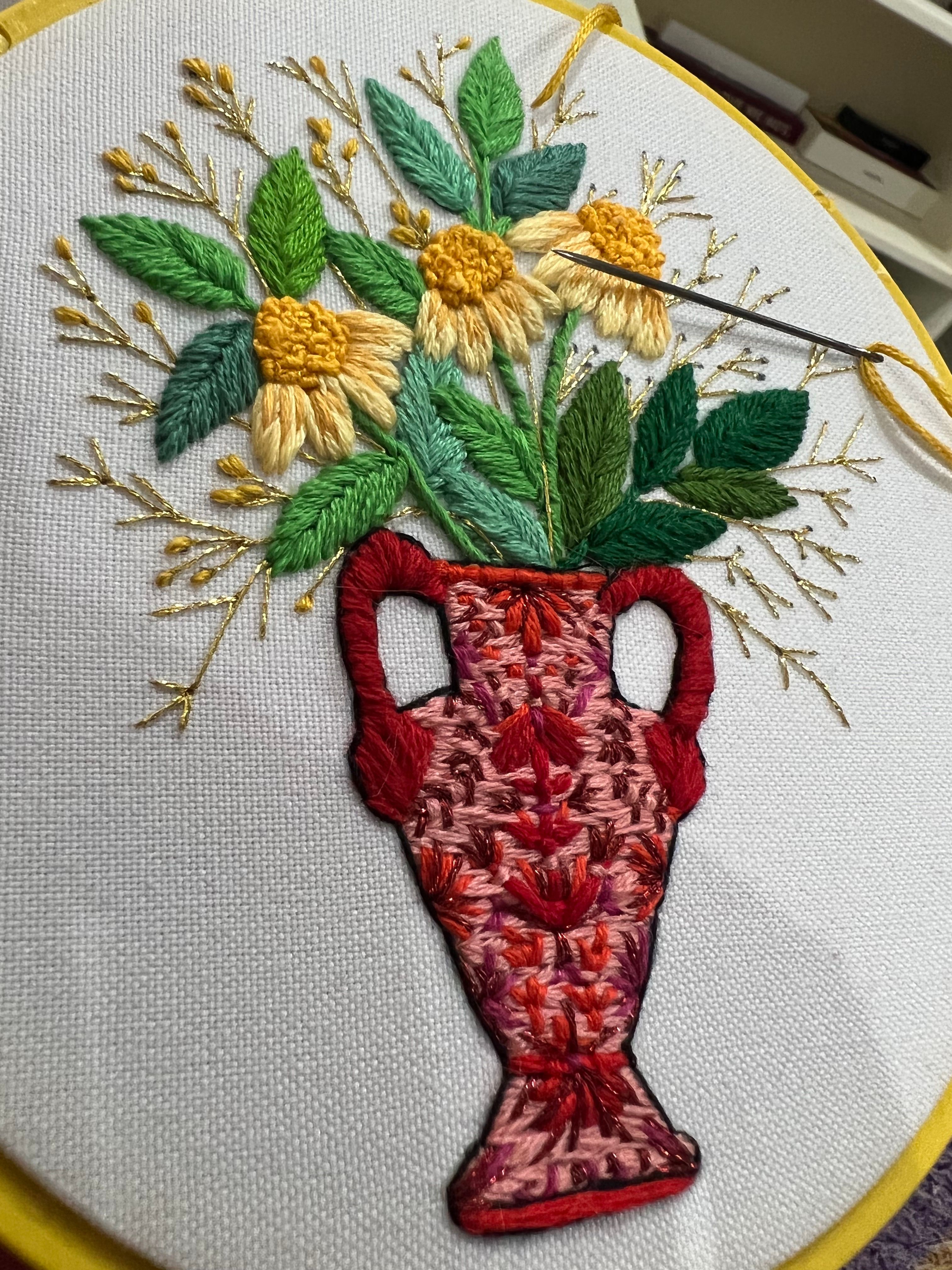 Me encantan los detalles del jarrón. También el uso de las cuentas y el hilo acrílico. ¡Perfecto! 👍👍
