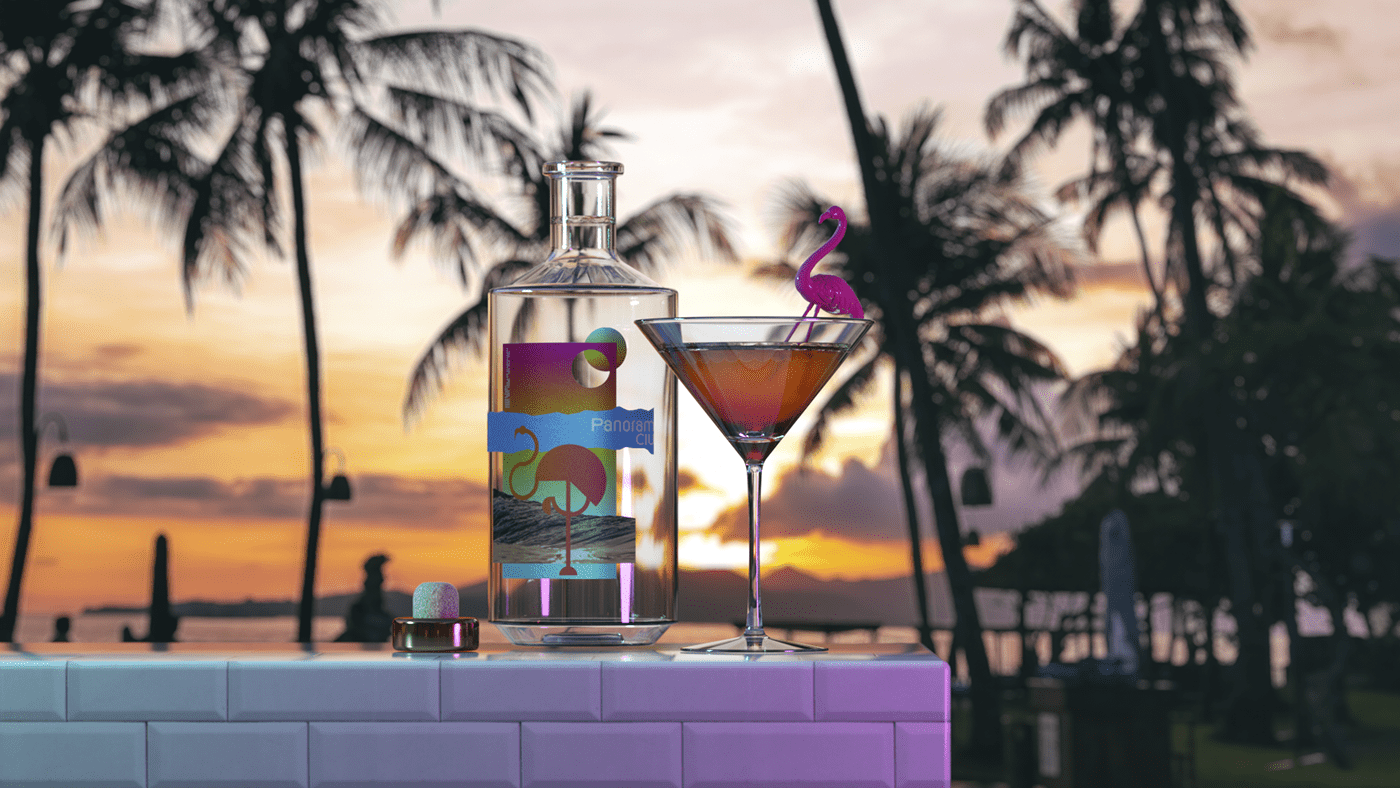 Panorama Club nos muestra una etiqueta llena de color que nos recuerda a unas vacaciones en un Beach Club, fragmentos de fotografía aluden a recortes de álbumes de fotos, creando una etiqueta que conmemora la nostalgia de las vacaciones en la playa.