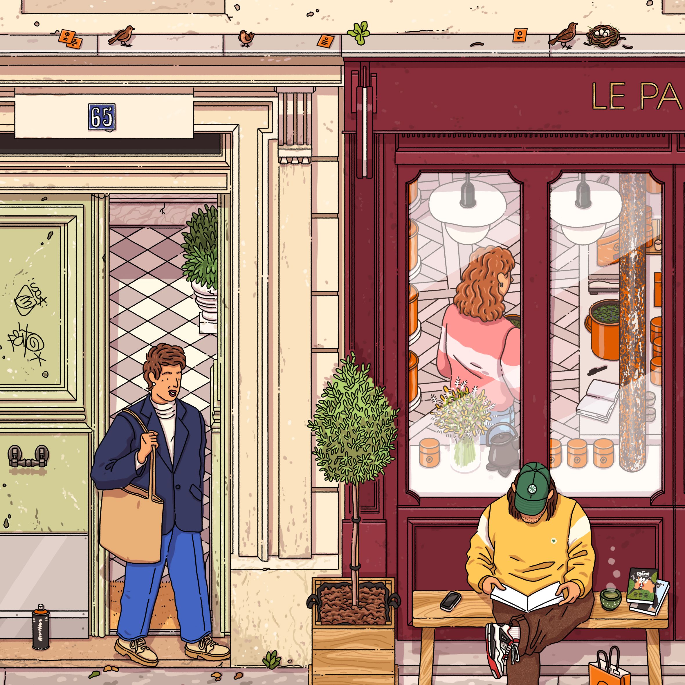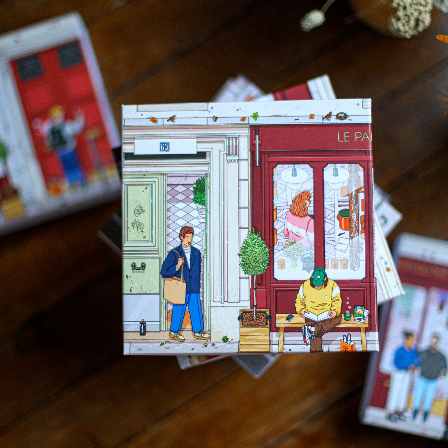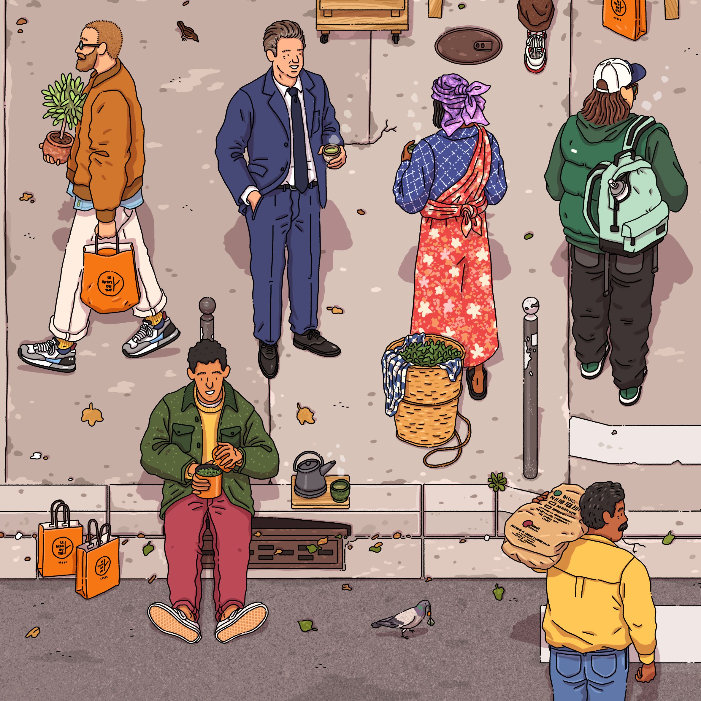 Collaboration avec Le Parti du Thé pour leur collection de coffrets pour Noël. La collaboration comprend aussi des boîtes à thé personnalisées, des t-shirts, un hoodie, des tote bags et la réalisation de vitrophanies pour les vitrines des boutiques.
