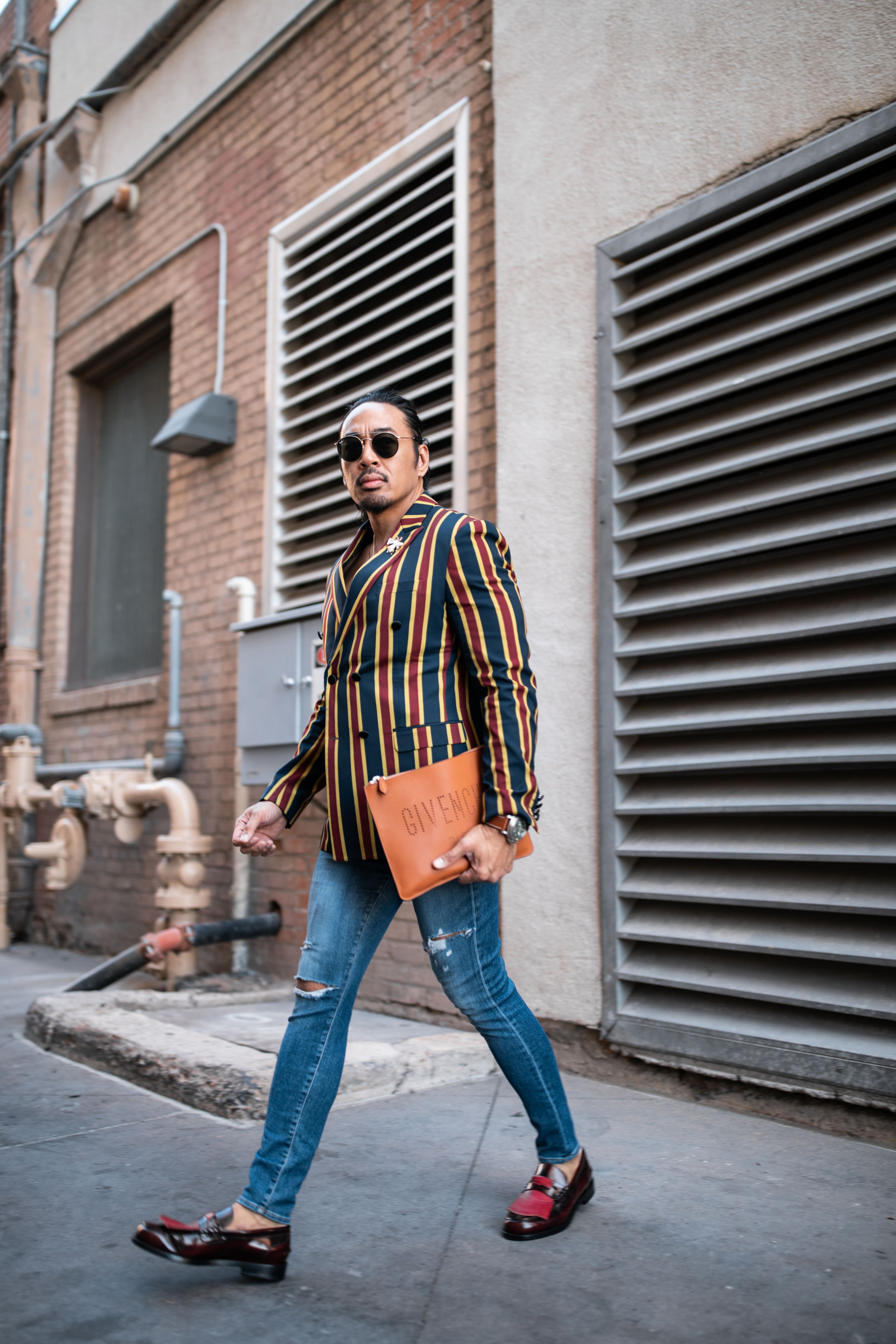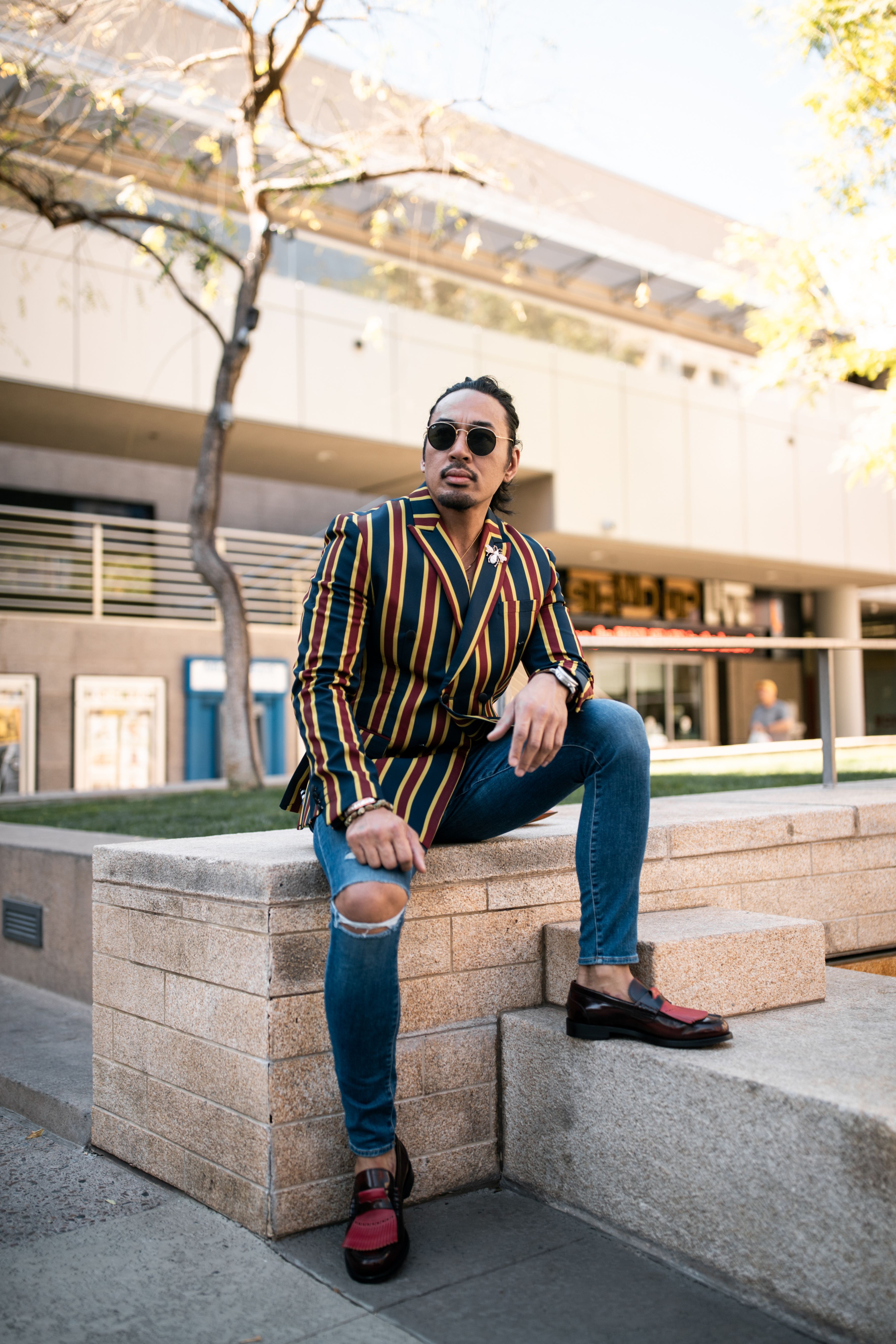 Proving that you don't have to be in NYC to shoot street style, I took to the streets of Downtown Phoenix, Arizona, to capture Eddie's amazing style. We got details of his accessories, action shots, and some stills for him to use for his styling portfolio. There was really fun light to play with, and so I made sure to shoot some of that. I also loved the lines on his blazer and found some steps that contrasted those vertical lines with horizontal lines. Symmetry play is always a sure shot for street style!