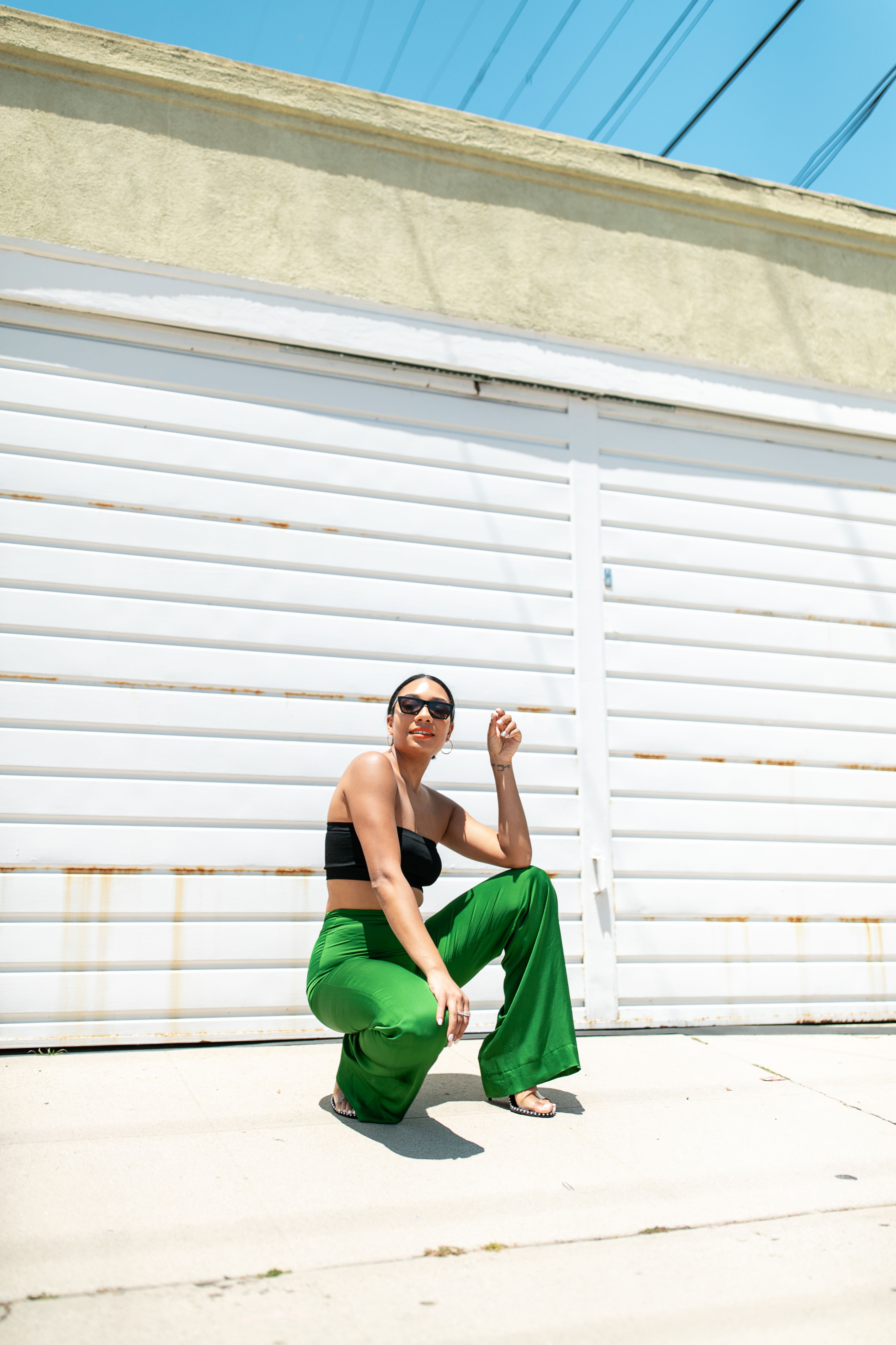 I shot this street-style look in Los Angeles for Jessica Franklin of Heygorjess. Because her outfit color was so bold, we stuck to a cleaner area that gave off more of a slow city vibe, vs a downtown vibe that street style is often associated with.