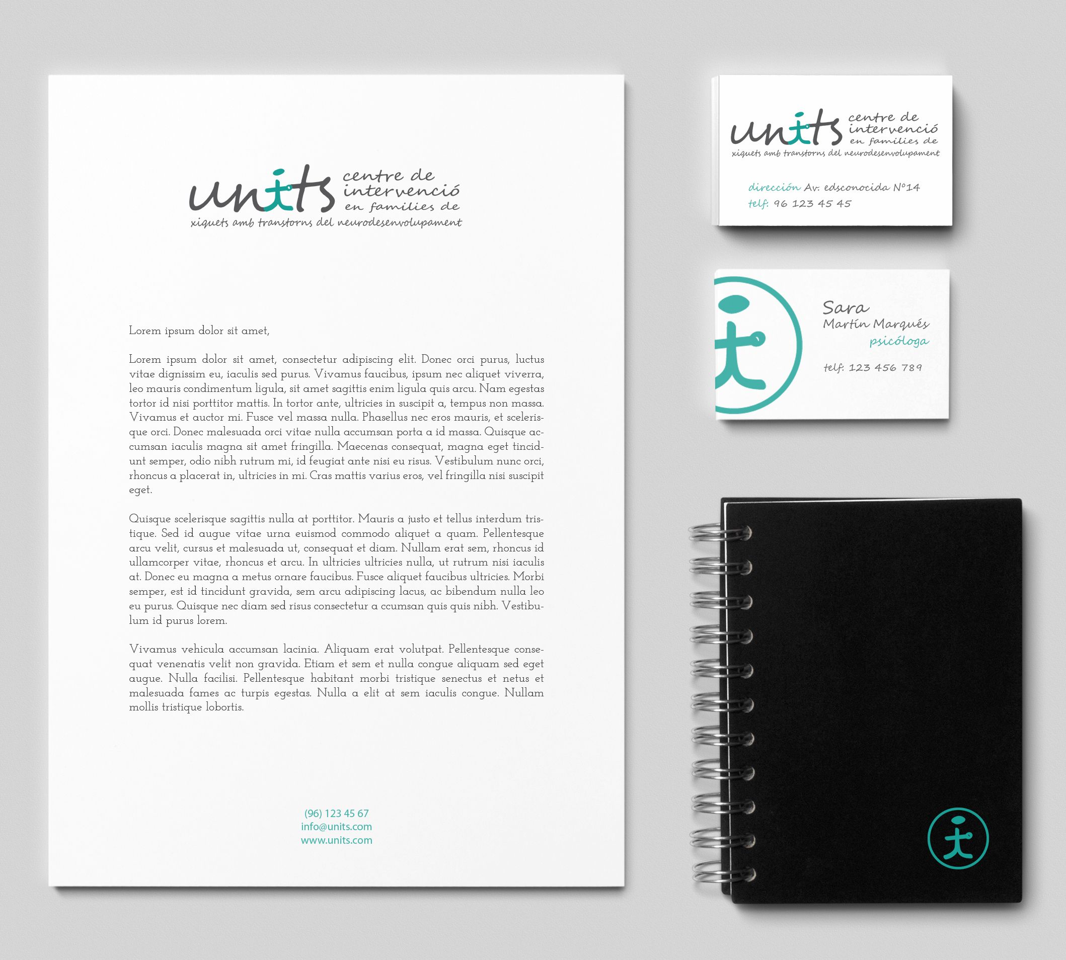 Consiste en un centro de intervención en familias que tienen niños con trastornos del neurodesarrollo. En este caso, los clientes querían una imagen que se basase en el nombre "units" y que transmitiese todo el significado que hay detrás del centro. Es decir, que a simple vista se entendiese que su labor profesional es la de crear un vínculo entre la persona con el trastorno, la familia y los profesionales del centro.