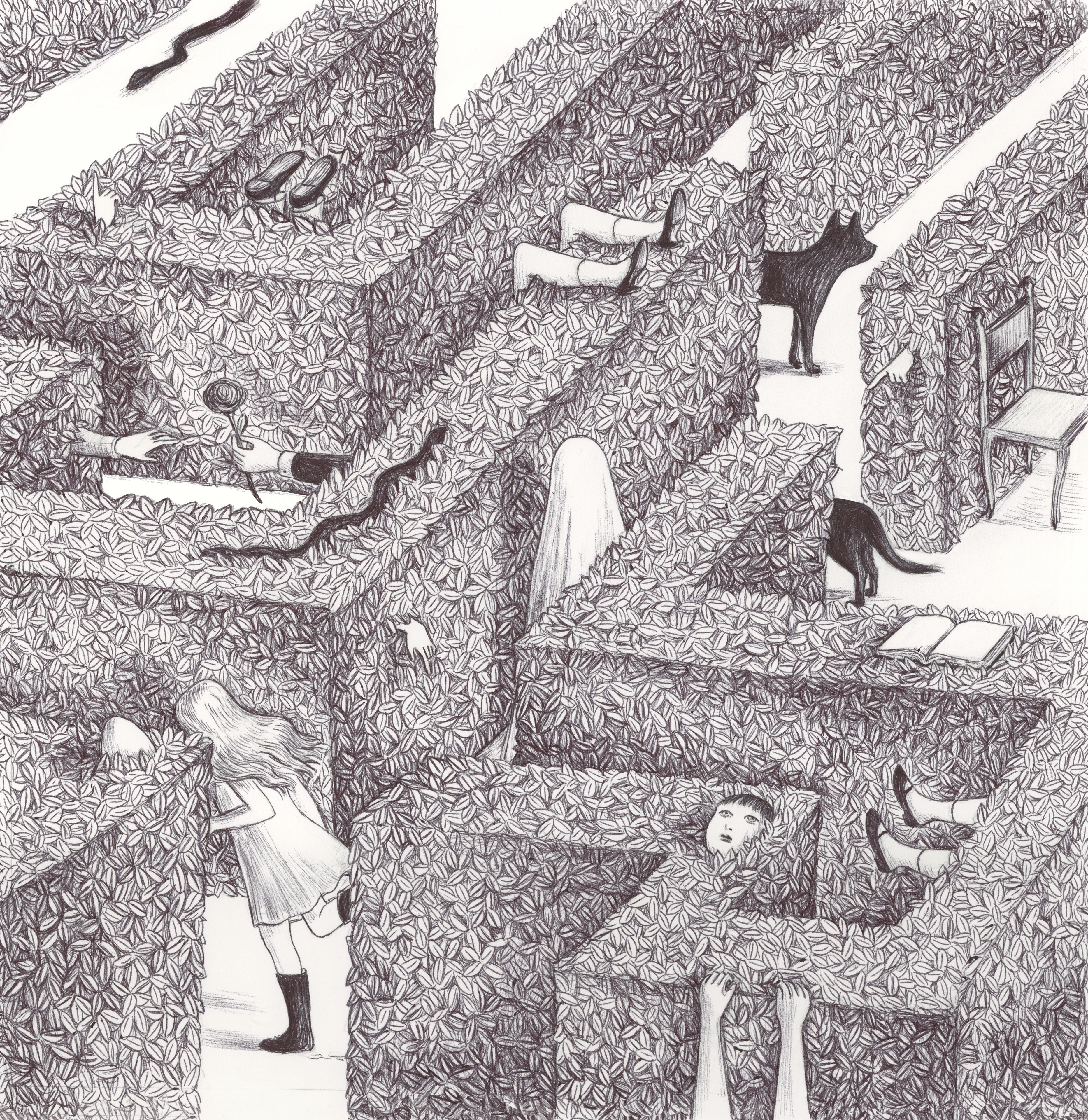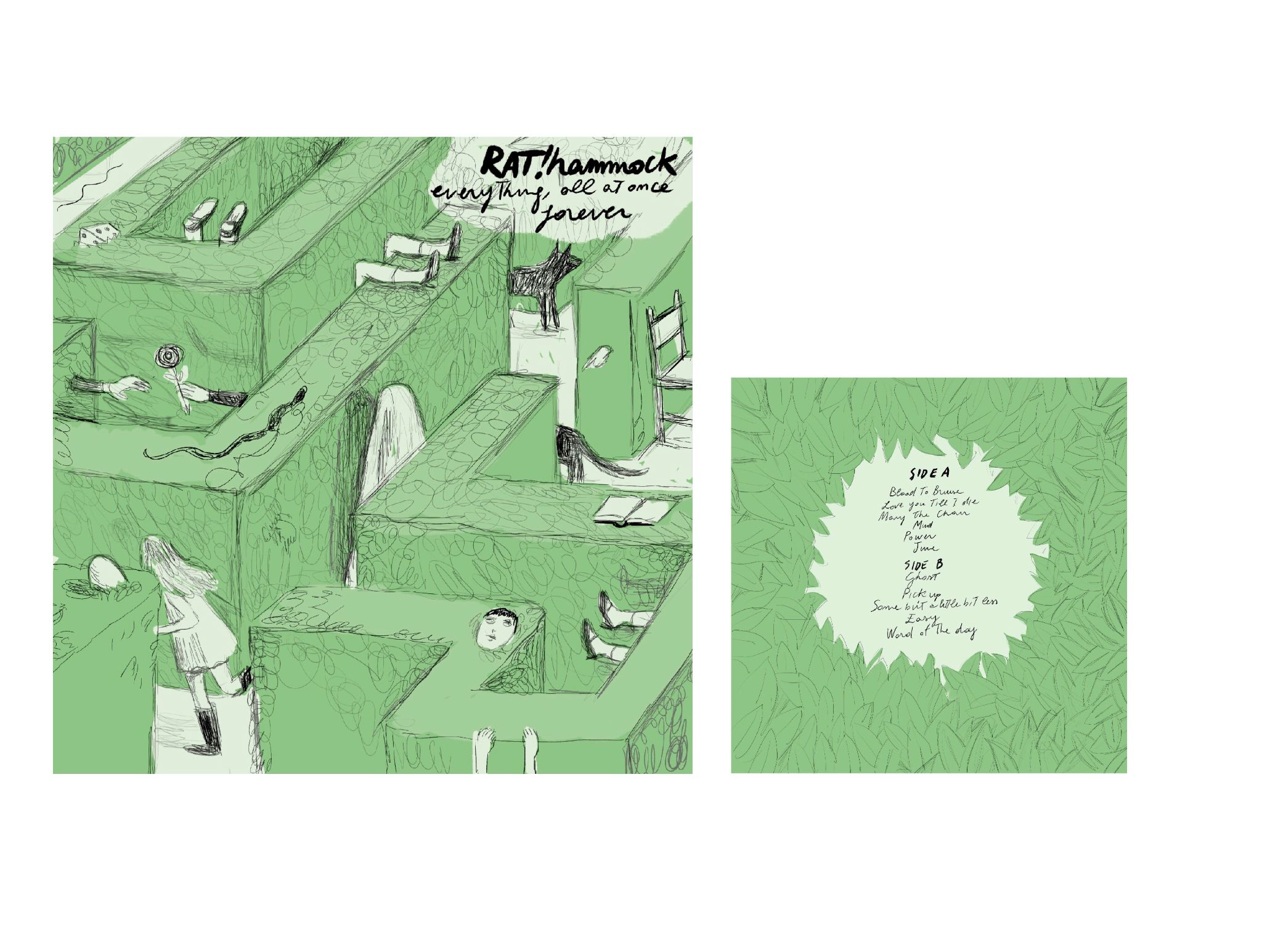 The Album cover represents a maze that hides many surreal and mysterious elements with references to the track listing of the album. the technique is ballpoint pen on paper with digital color post production