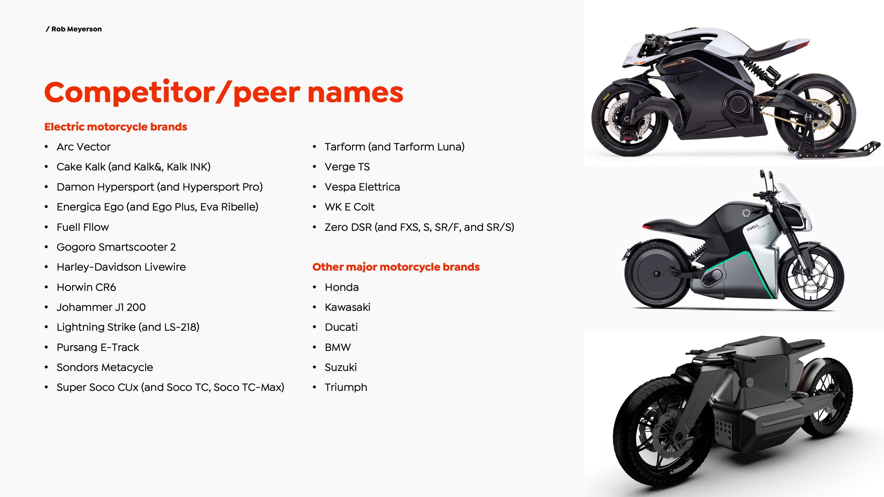 My final project for Fundamentals of Memorable Brand Naming is a first-round naming presentation for "Project eCycle." The hypothetical assignment was to create a company name for a soon-to-be-launched electric motorcycle manufacturer.