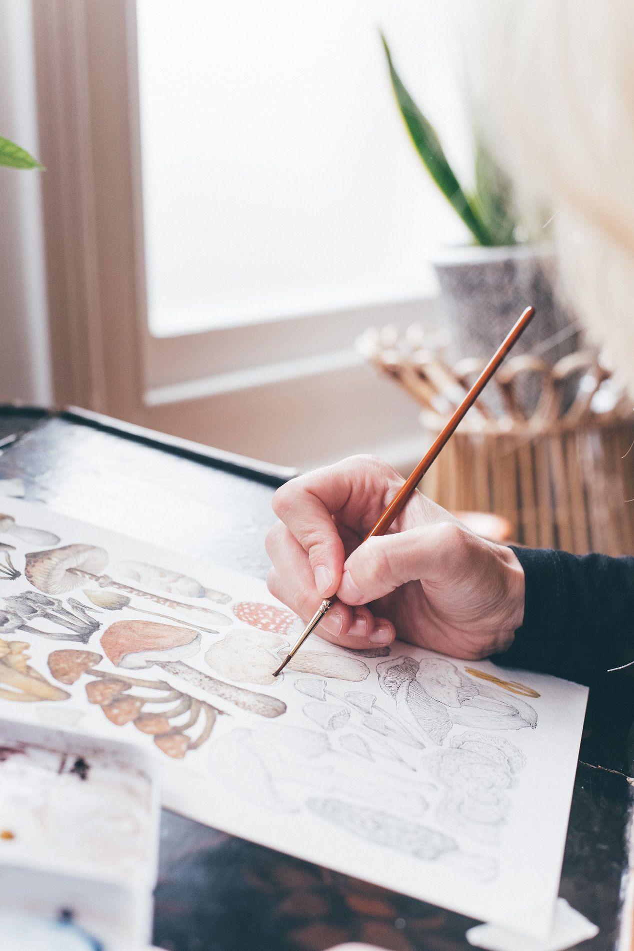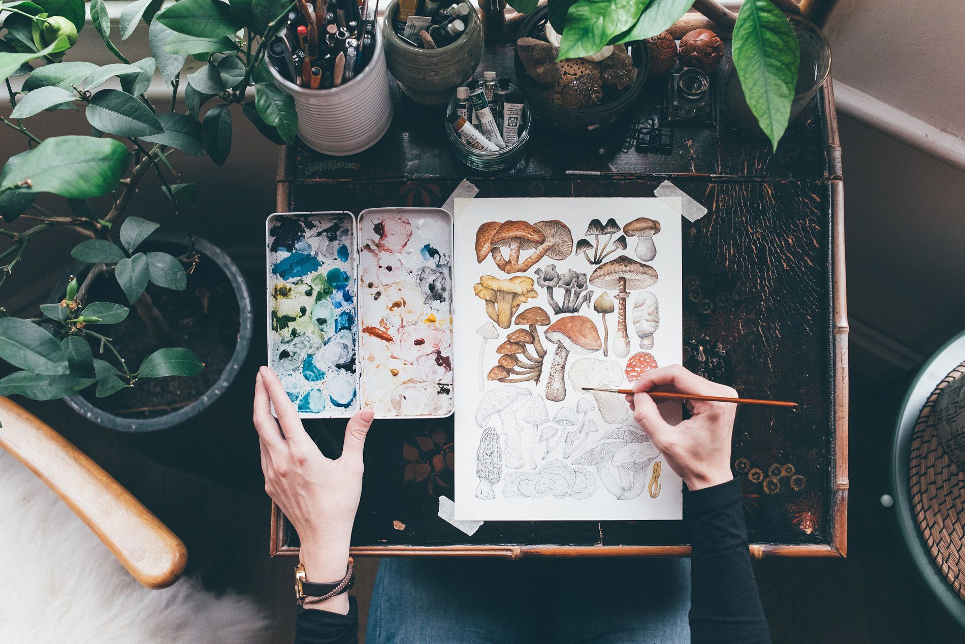 Ilustración de la naturaleza con acuarela y plumilla