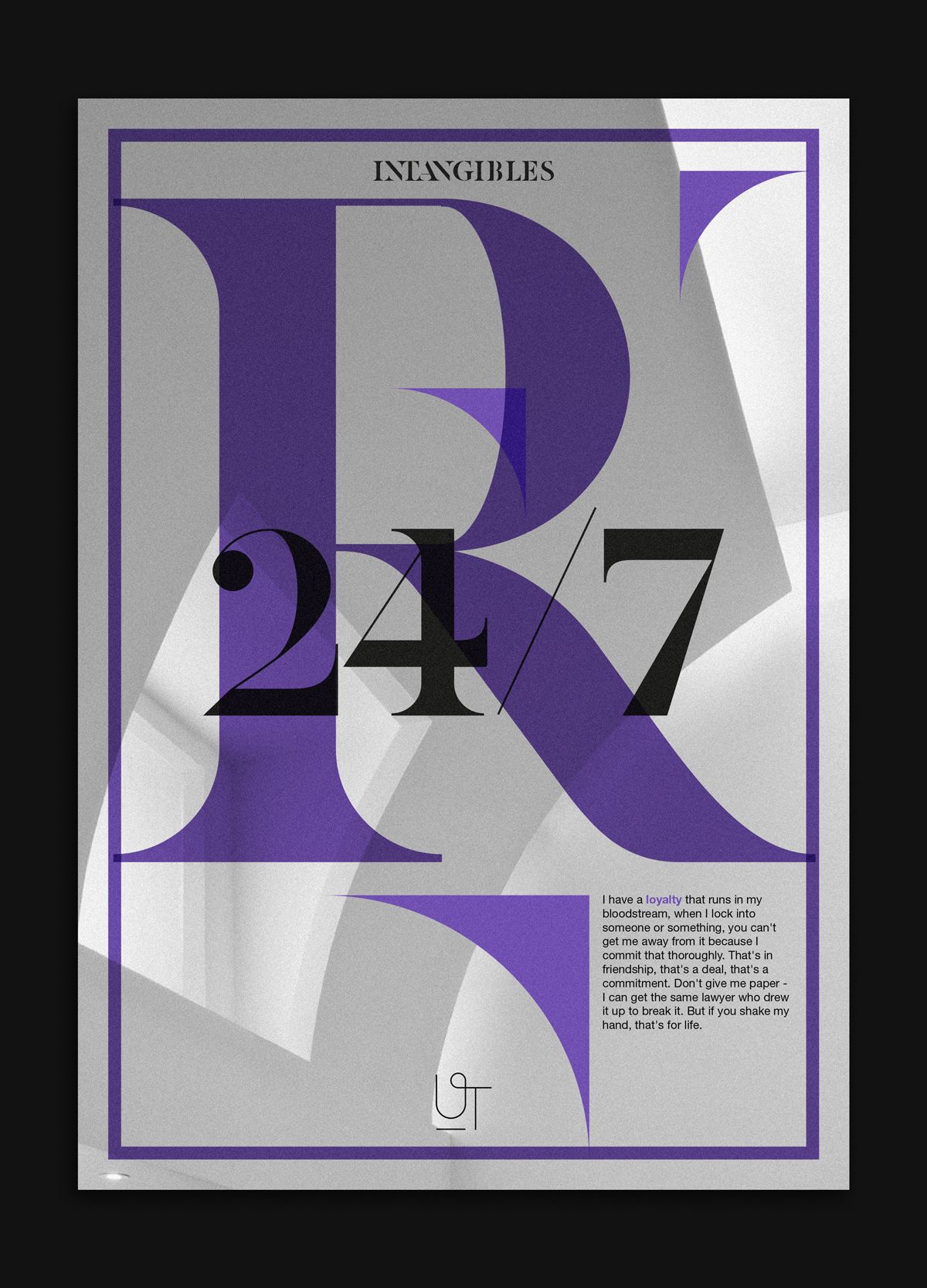 Logotipo y tipografía corporativa para el bufete de abogados "Intangibles". En colaboración con Serse Rodríguez. La tipografía está inspirada en la tipo "Dala Floda" pero intentando hacerlo más geométrica y cerrando todas las formas.