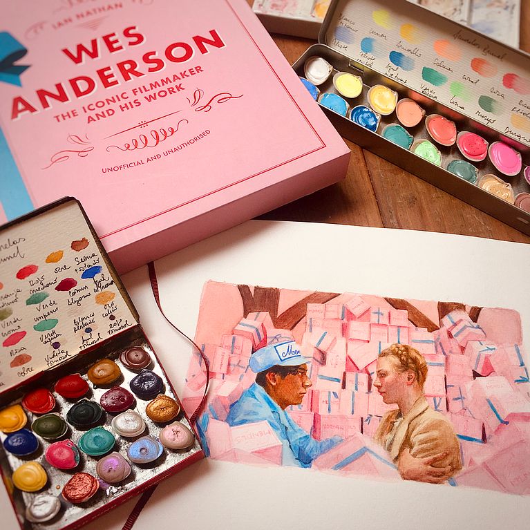 Soy muy fan del cine y las series, y estas son gran parte de la inspiración que uso para las colecciones de acuarelas. Para esta paleta busque colores que nos remitan a la impecable paleta de tonos de ¨El gran hotel Budapest¨de Wes Anderson, director de cine reconocido por su estética y colores sumamente bellas