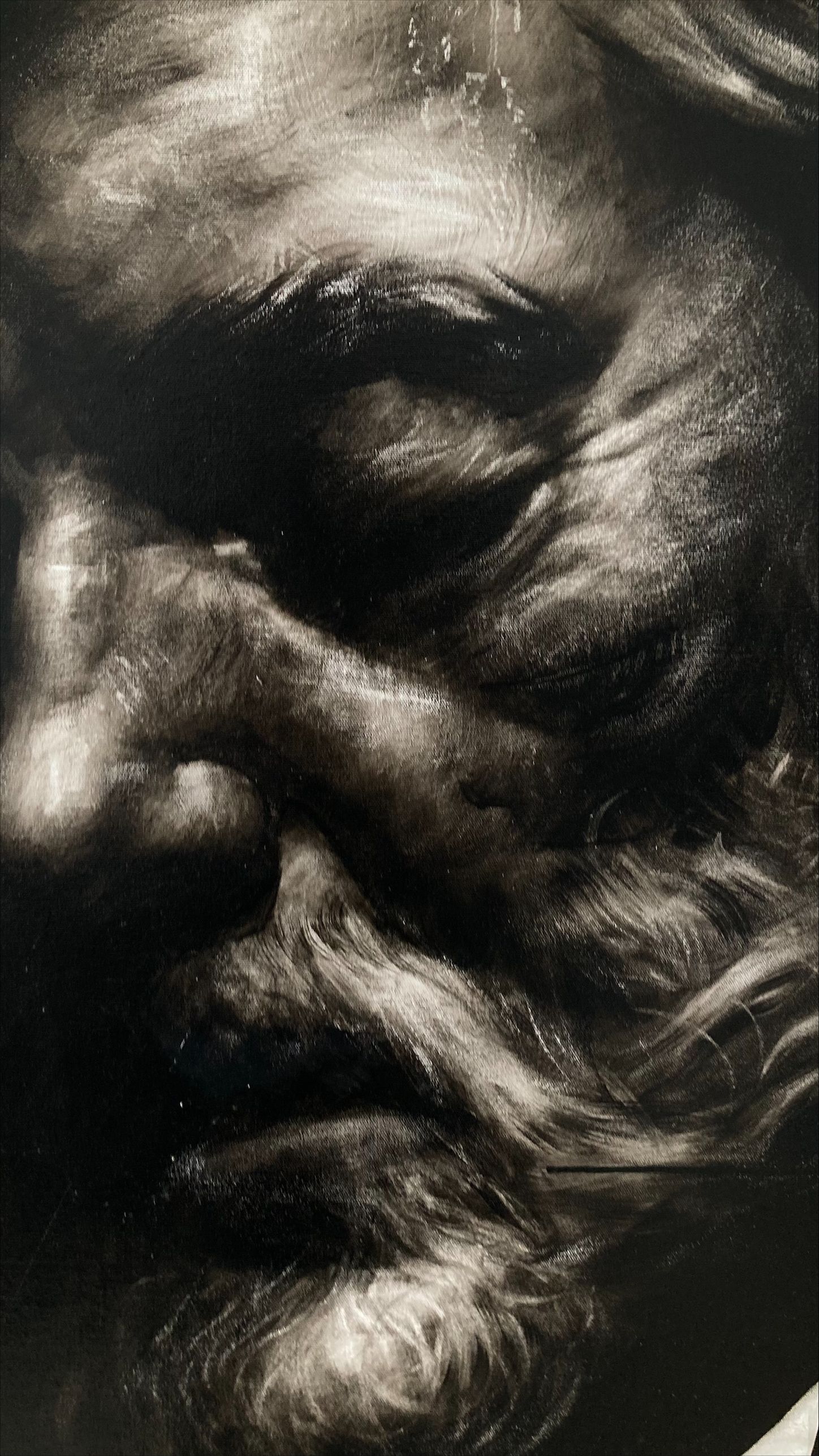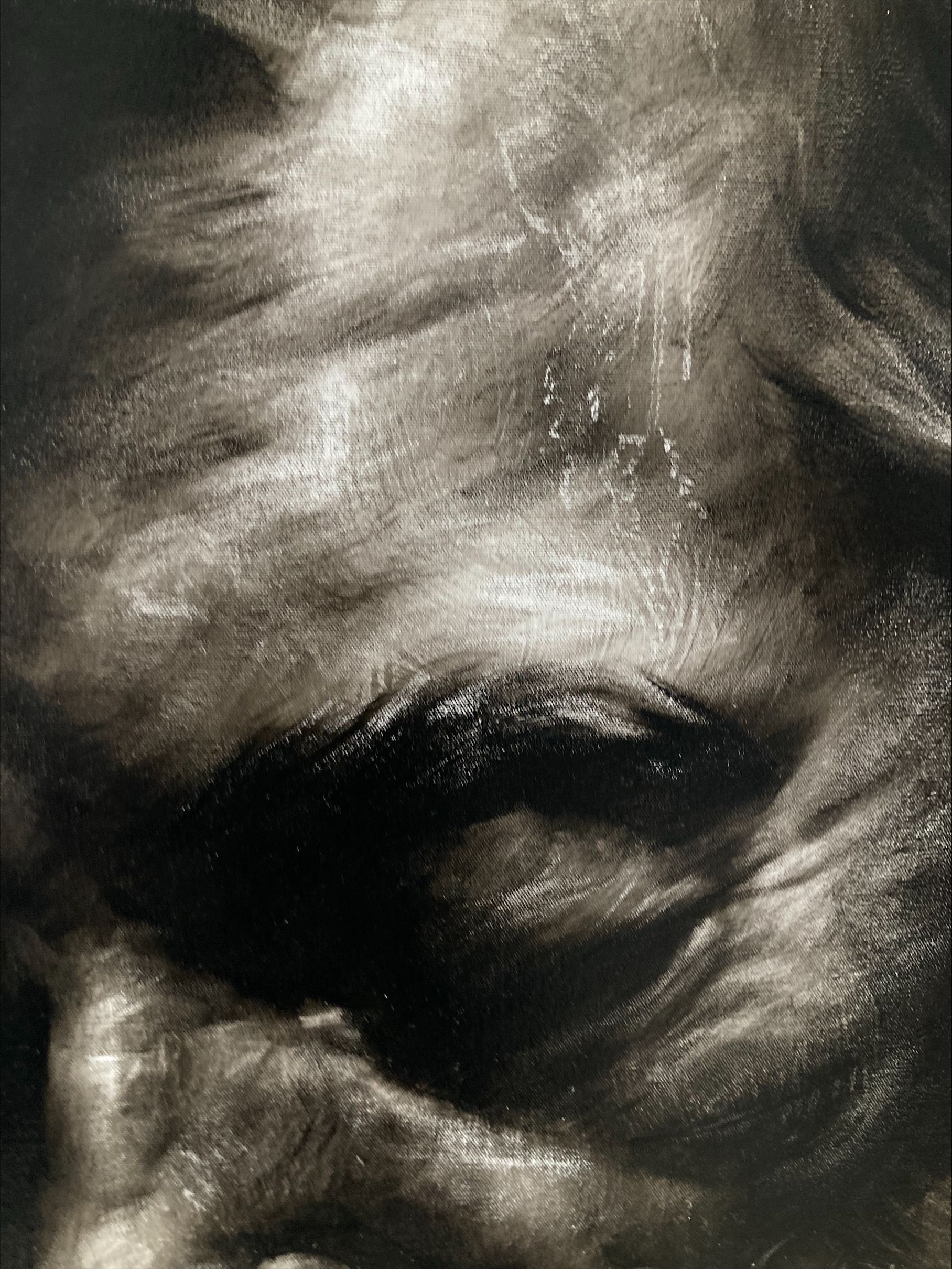 Esta obra la realicé para mi exposición en la Ciudad de México titulada " Límite Absoluto". Fue una exposción individual donde la mayoría de obras eran de gran formato. Esta obra mide 180x120cm y es por eso que incluyo una foto en el estudio para que puedan ver las proporciones y también algunos fotos de los detalles que este formato me permite realizar. Con esto los invito a que puedan trabajar no solo en formatos pequeños como lo hicimos en mi curso sino que puedan ir a formatos grandes e incluso murales si así lo desean.