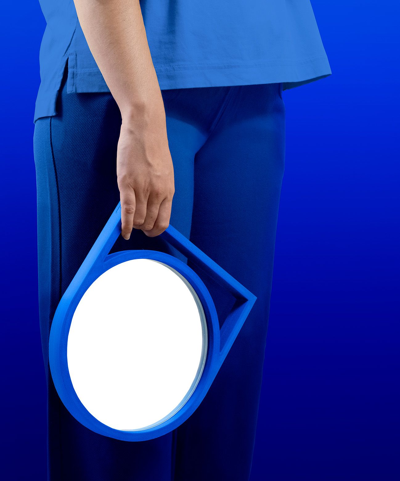 Halo+ est une version plus grande du petit miroir Halo. Ce miroir est imprimé en 3D dans 5 couleurs avec du rPLA : un plastique biosourcé de chez Reflow Filament issu des déchets d’emballages alimentaires par l’un des principaux recycleurs de la région du Benelux. Contrairement à son petit frère, Halo+ peux s’accrocher au mur.