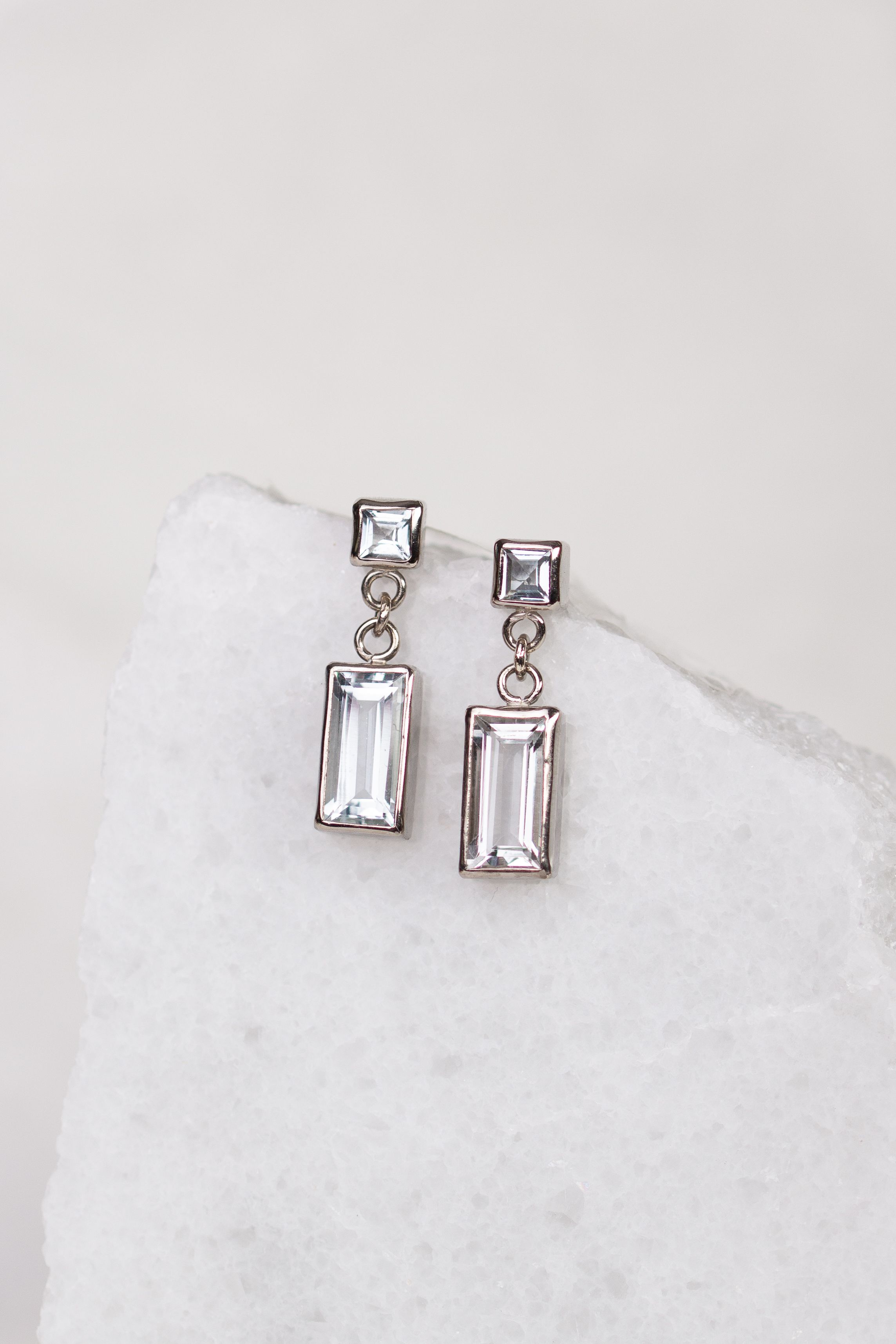 Pendientes o aros colgantes diseñados y confeccionados a pedido para una boda. Armado, soldaduras y engastes realizados a mano. Engaste tipo bisel.