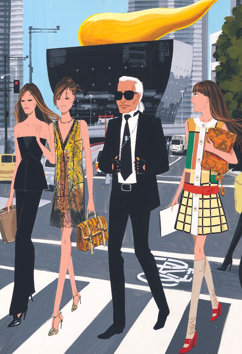 Colaboro con la edición japonesa de Vogue desde 2010, allí publico mensualmente de una a dos ilustraciones en una sección titulada “My bag affair” en la que reflejo las tendencias de la temporada. Es apasionante tener una colaboración tan larga y continua con una publicación tan importante porque te permite, por un lado, participar de la moda en primera persona y, por otro, llegar a una audiencia muy masiva y de calidad. En estos años de relación editorial he podido aportar mi visión artística a un mundo que me apasiona.