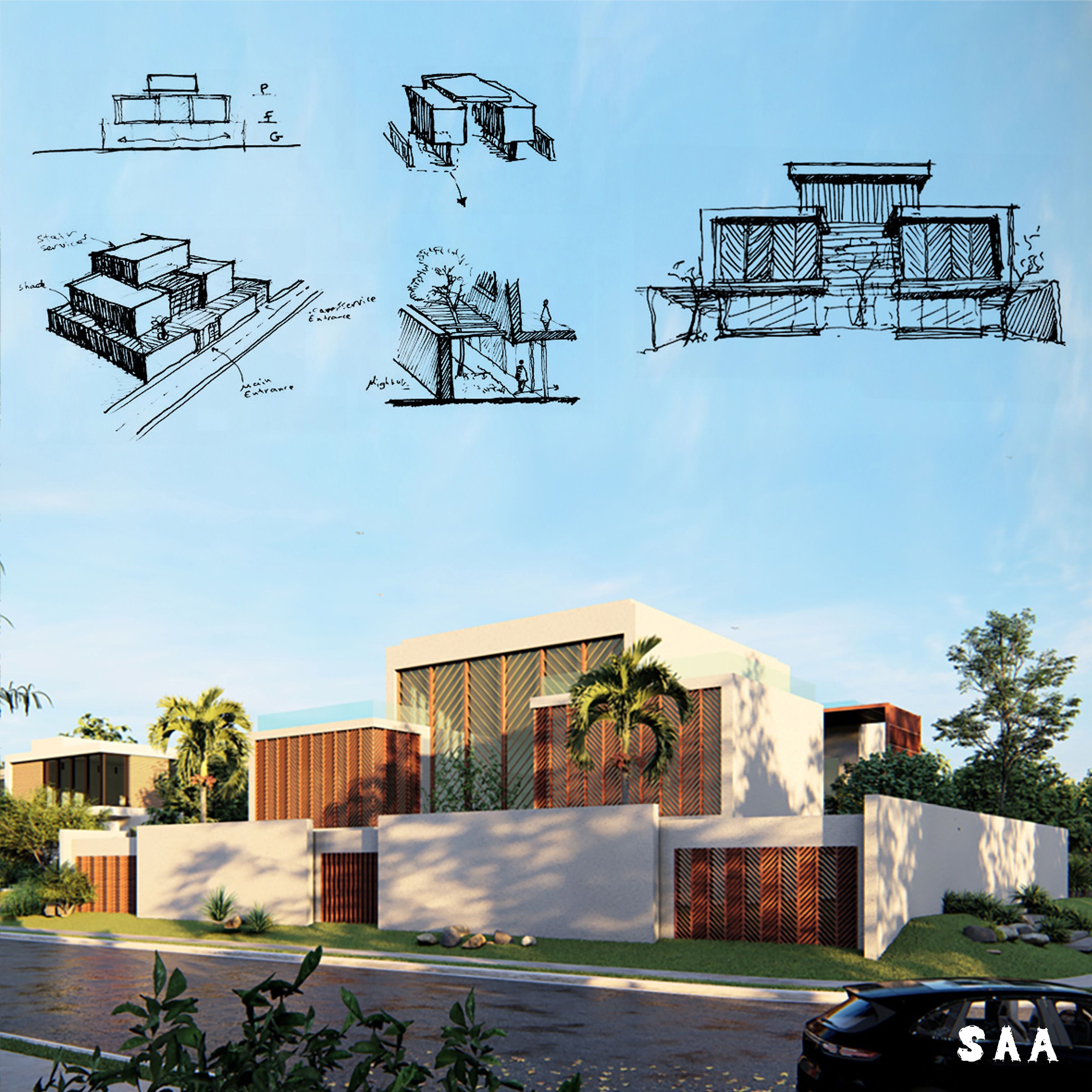 I focused on my design for this villa on providing total privacy to the people in all of the spaces inside the villa and in its garden with enjoying the natural lighting and ventilation.