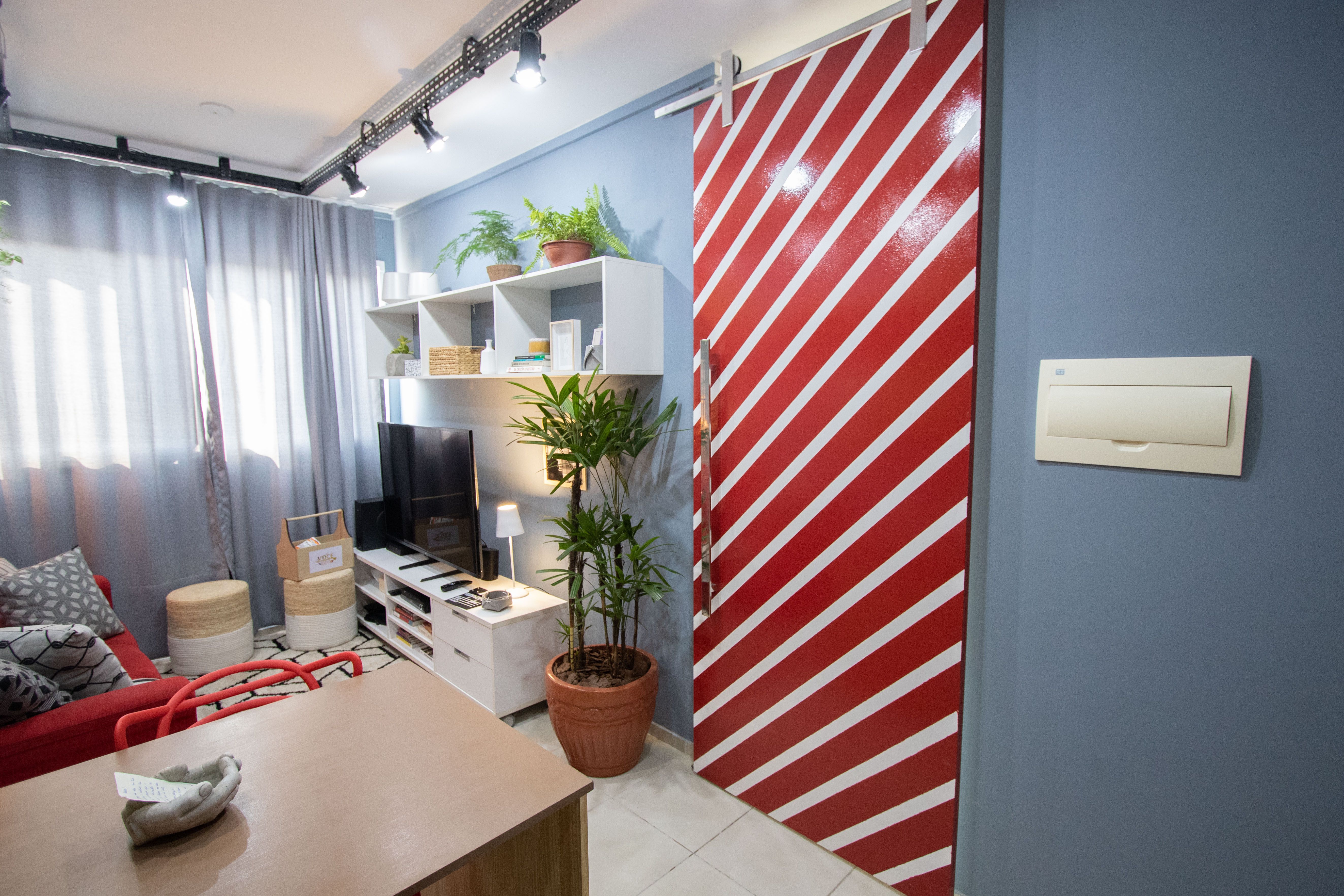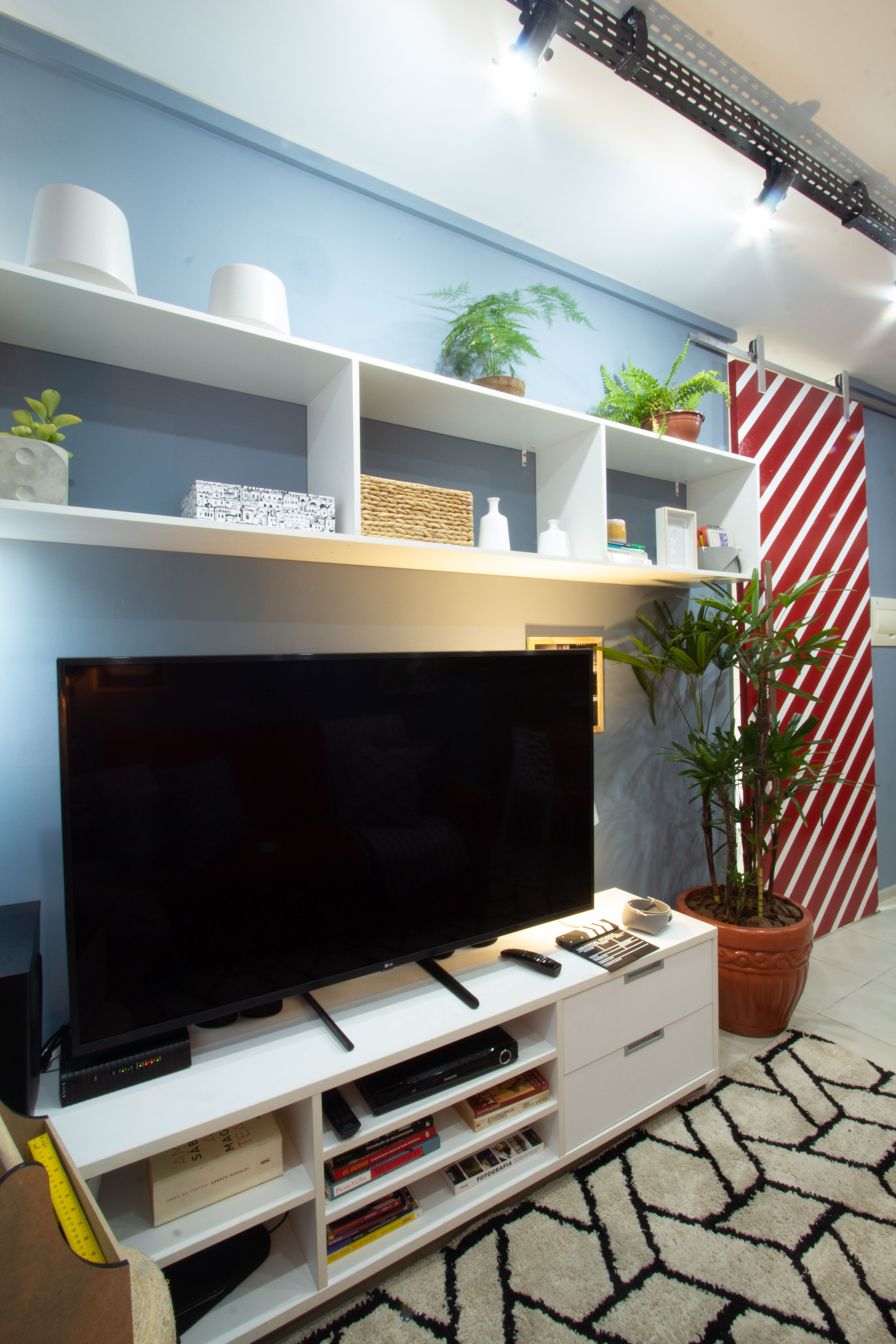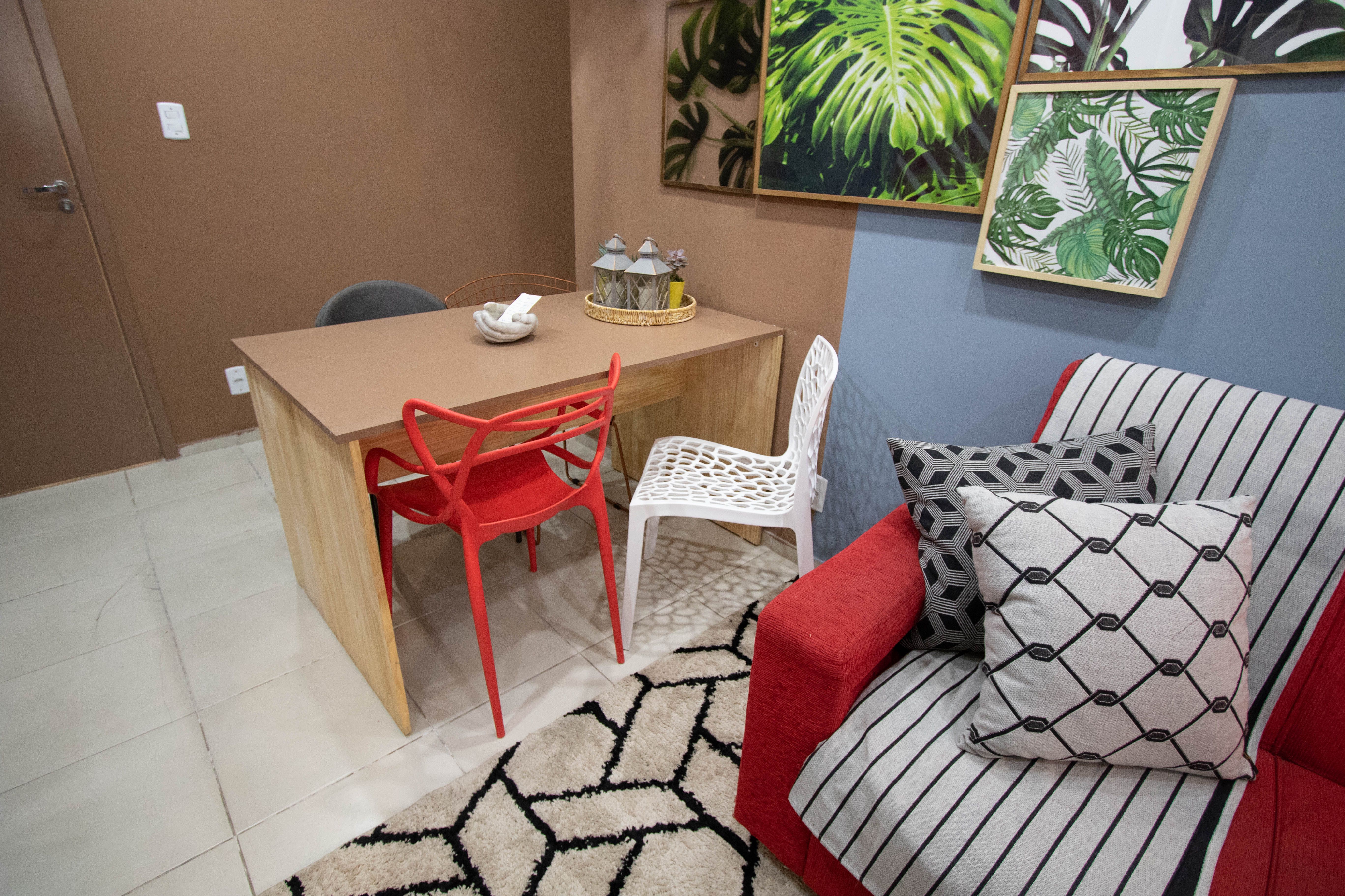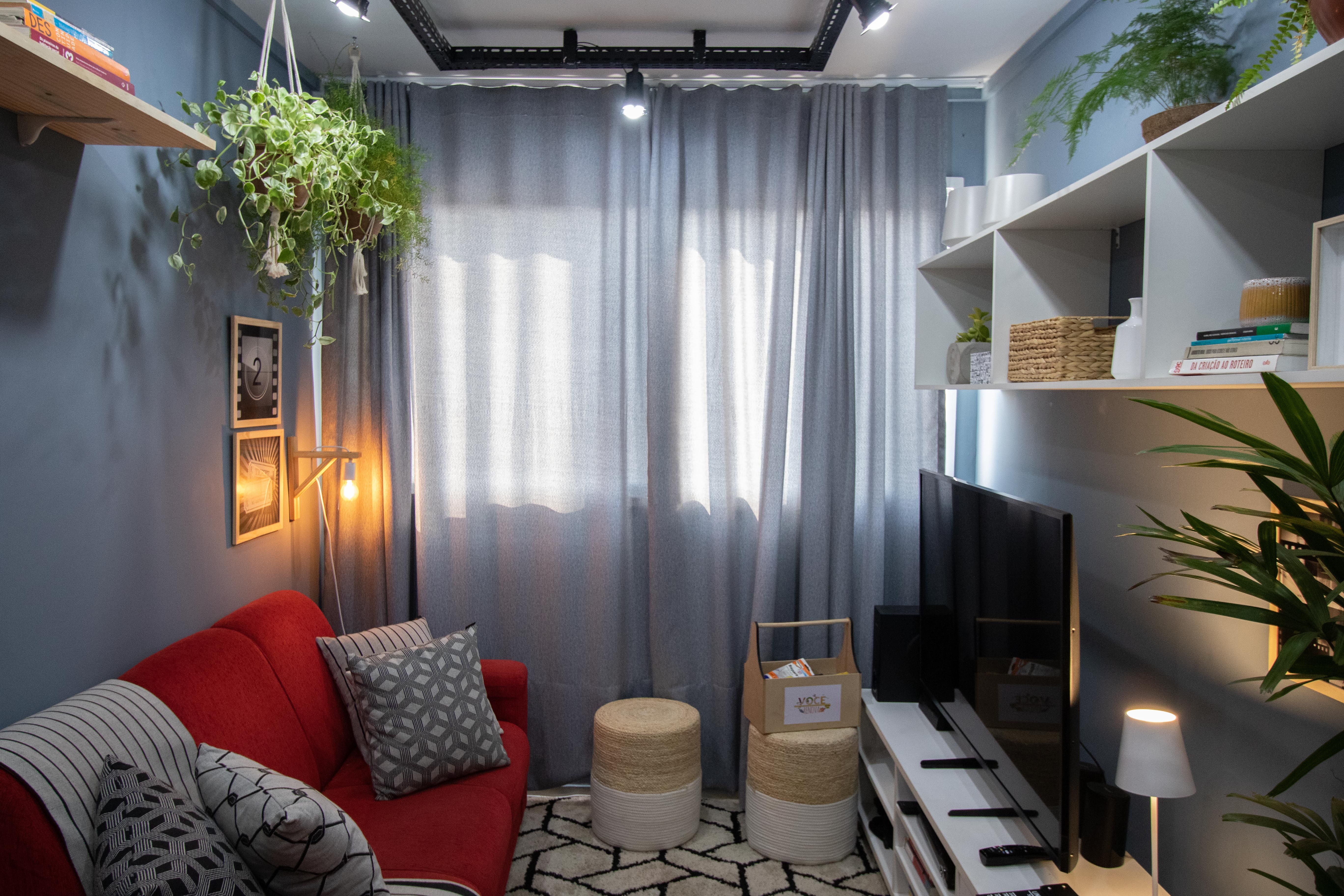 Sala de estar e jantar. Um palco para o shows do trio que mora nela. São Paulo/SP