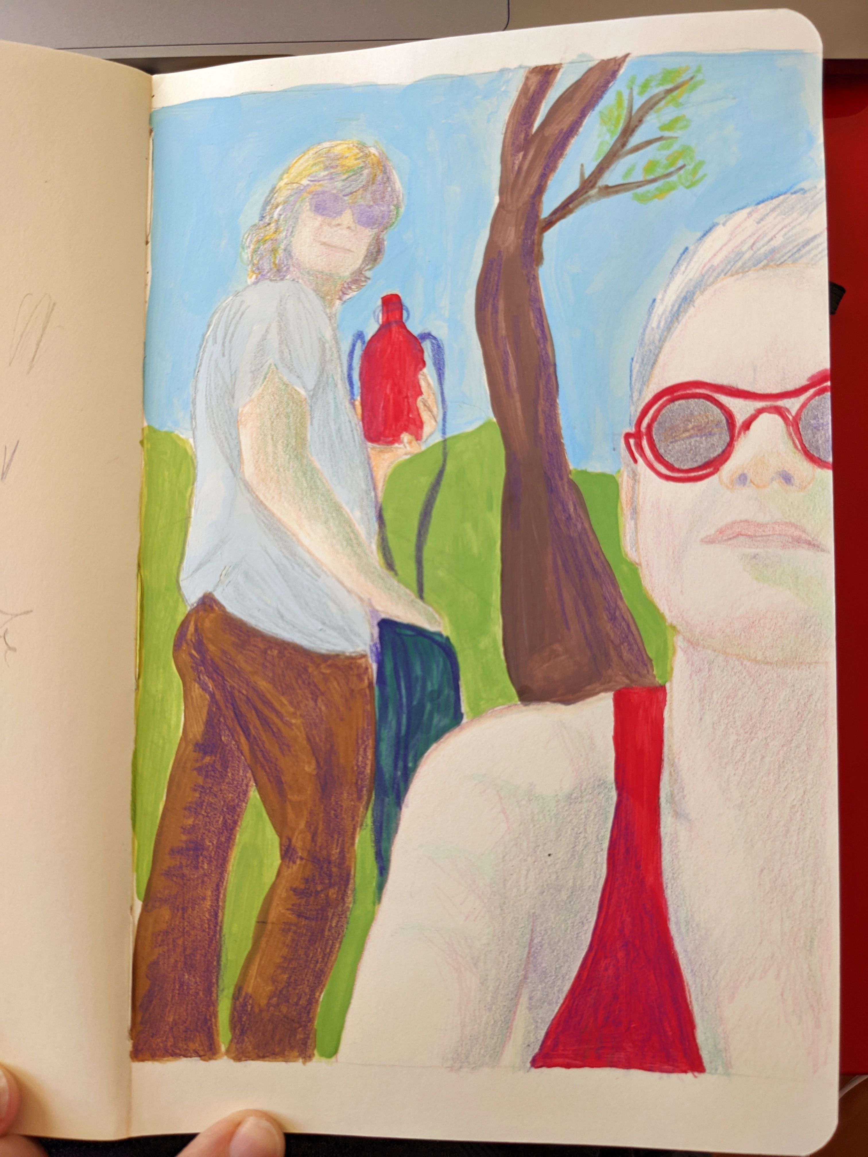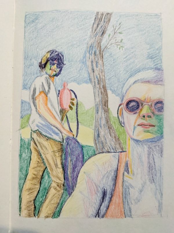 Muy bonito, felicidades! Me gusta mucho la composición, y el uso de verdes en las caras dan la sensación de la luz revotada de la naturaleza. Podrías apretar un poco más el lápiz, y tal vez hacer el mismo uso del verde en los brazos. Pero es un trabajo realmente bonito!