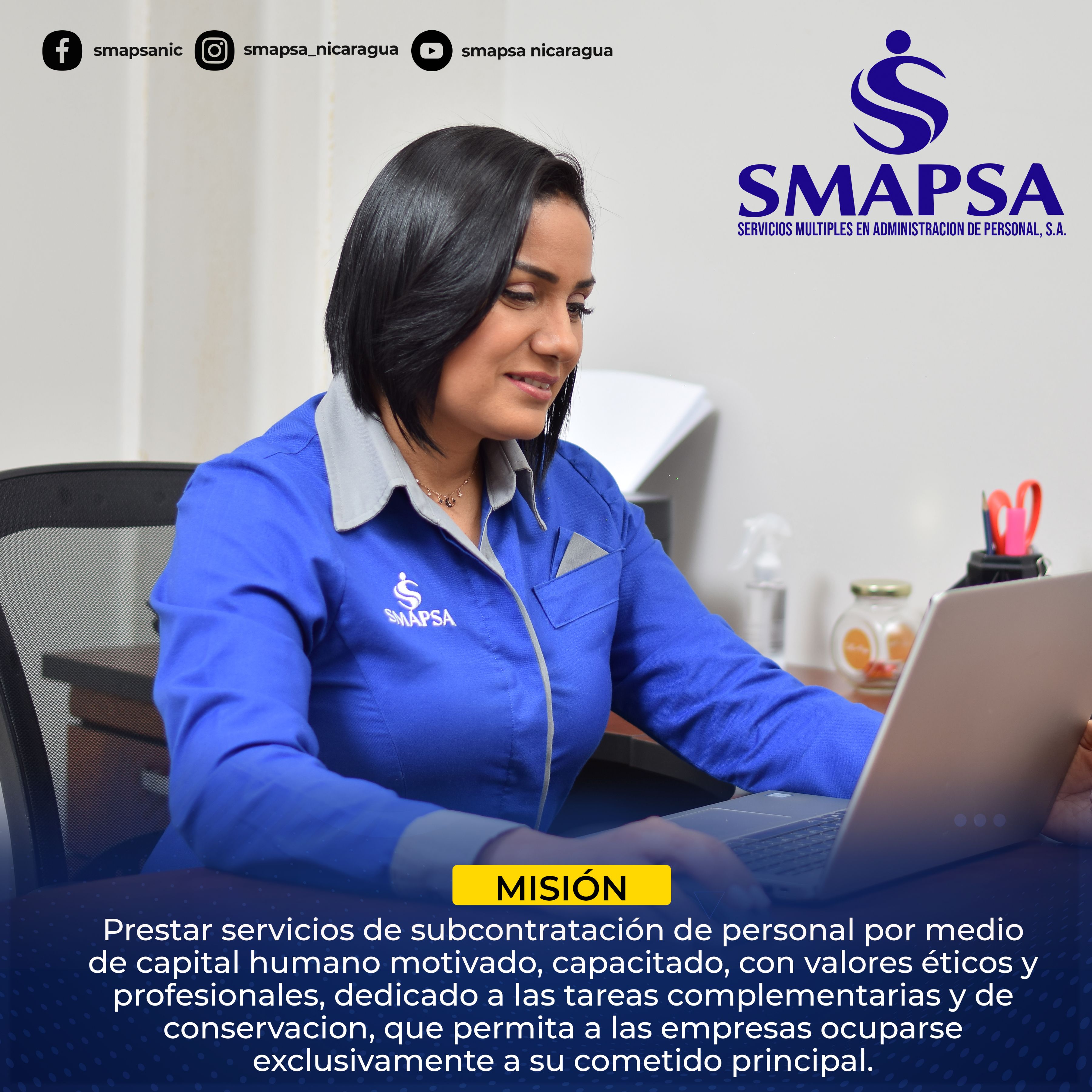 Uno de los beneficios de contratar a SMAPSAGerente en Imagen - Otro de los servicios ofrecidos por SMAPSA es el de Promoción y MarketingServicio de Limpieza - Uno de los tantos servicios ofrecidos por SMAPSARespaldo de SMAPSA en apoyo a empresas que requieren el servicio outsourcingMisión de SMAPSAInvitación a contactarse con SMAPSAConsejo de GerenciaValores del Personal de SMAPSAMontaje de modelo con otro productoPromoción para personal de almacen-fotografía de internet