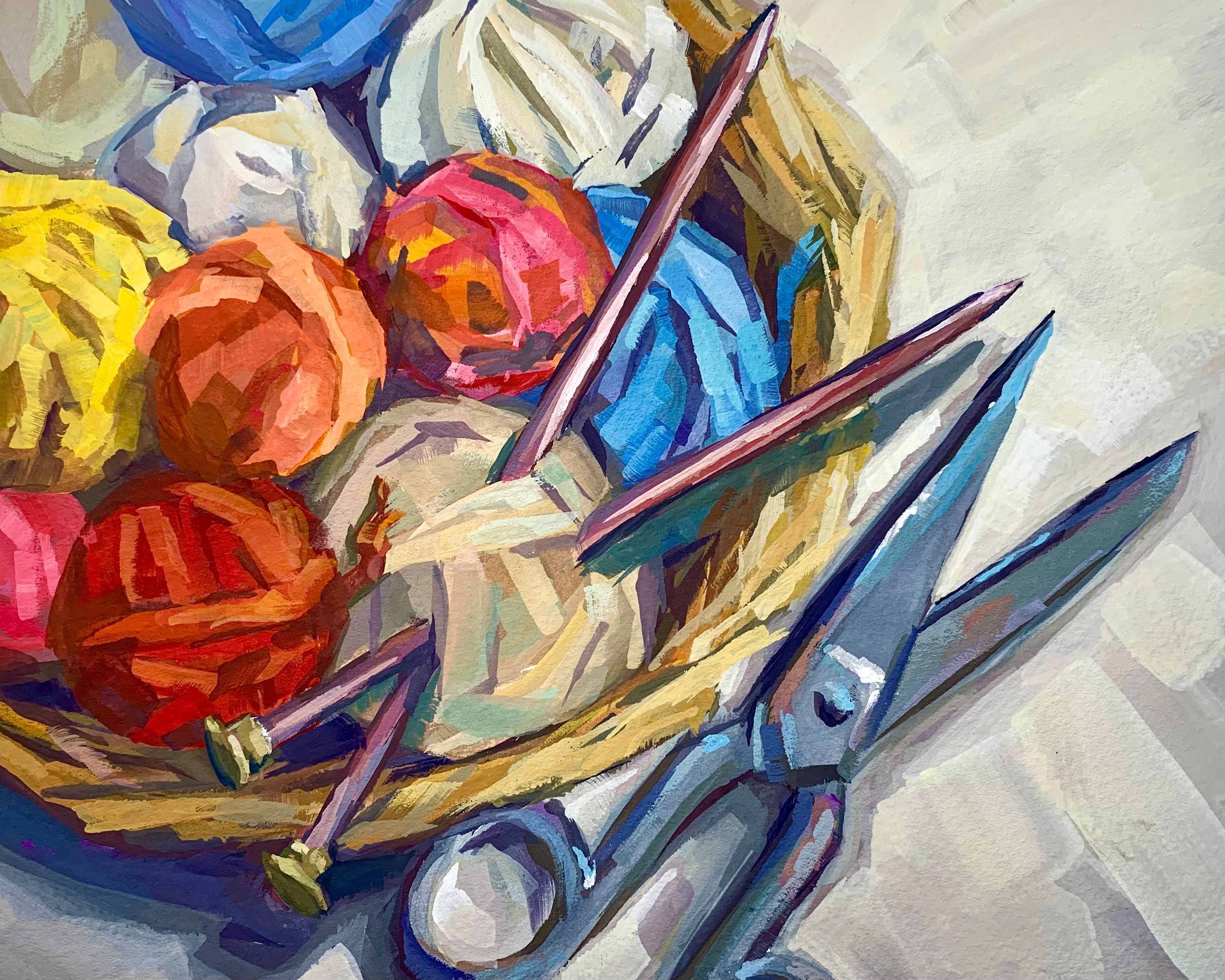 This piece was a focus on textures.. the hard, shiny objects, the soft yarn balls and textured basket