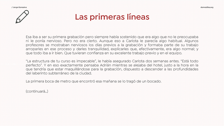Y, sobre todo, espero que tú también te atrevas a disfrutar de todo el proceso de escritura desde la idea inicial (el personaje, su conflicto y la premisa), la primera frase y todo lo que se te ocurra mostrarnos de tu proyecto.