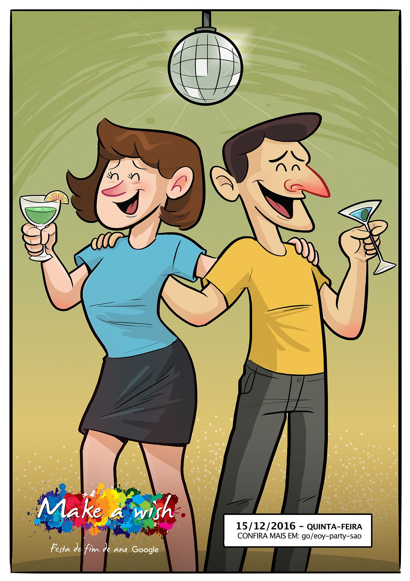 Projeto elaborado para Google Brasil, usando a comunicação interna da Festa de fim de ano para avisos via whatsapp, e-mails e posteres no escritório!