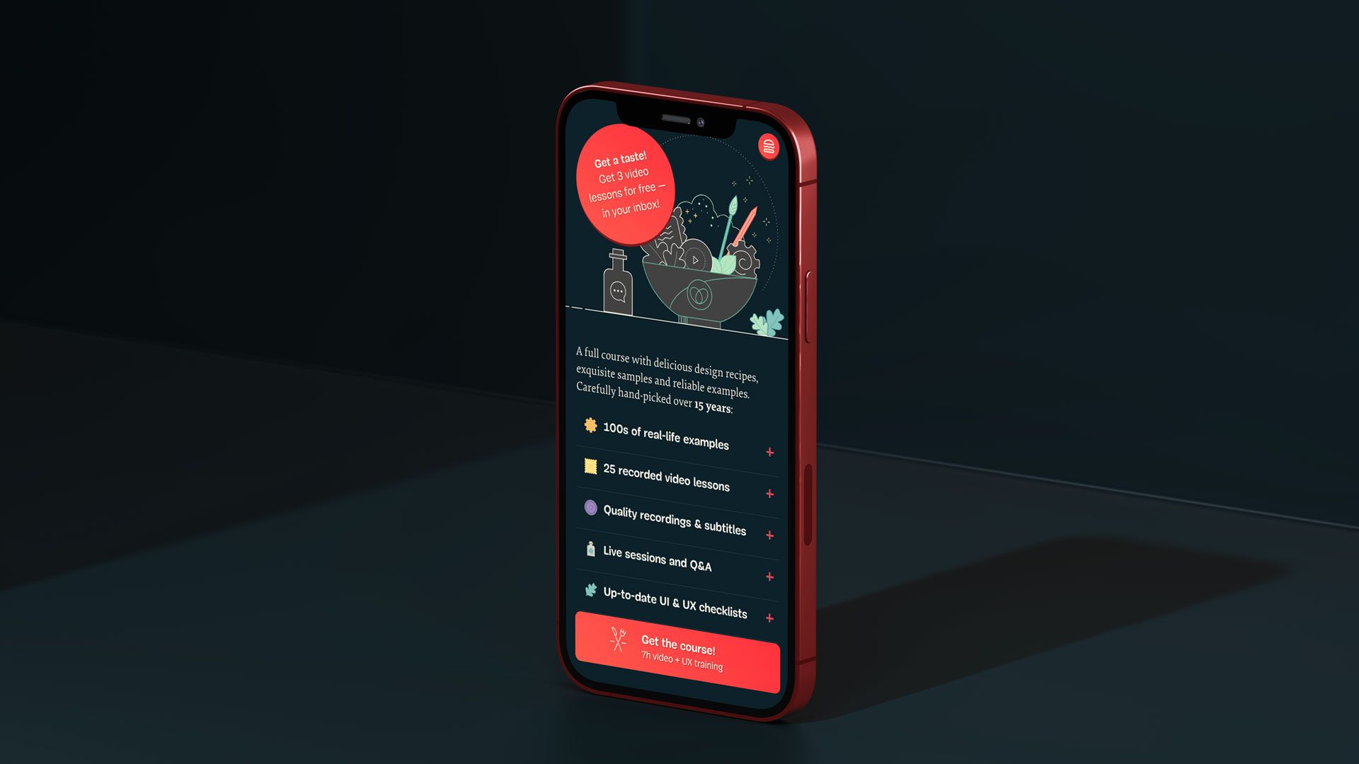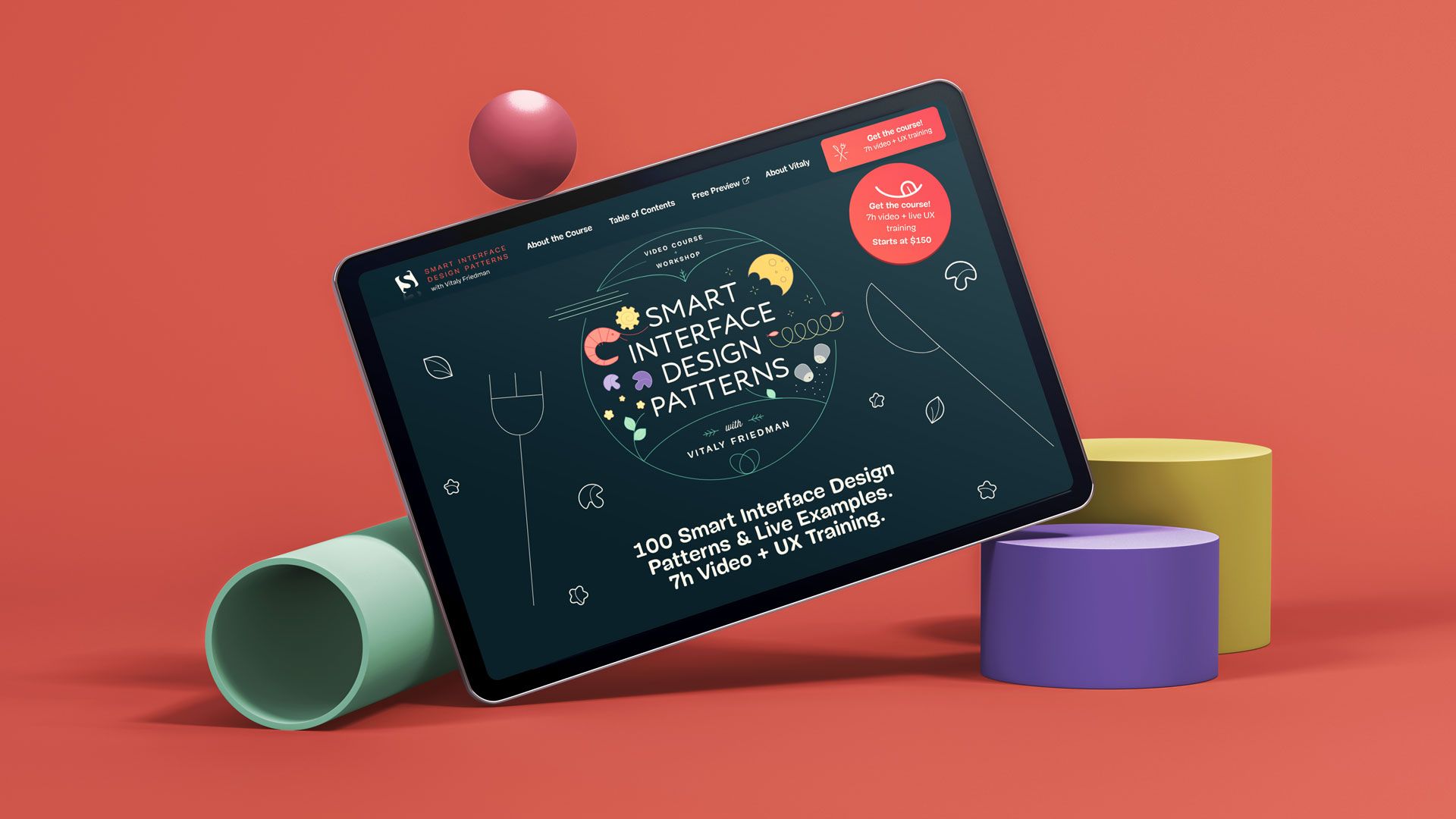 In the light of a previous collaboration (the design of Smashing Book 6), founder Vitaly Friedman asked me to join the launch of a prized project he had been working on for long time: the Smart Interface Design Patterns courses.
