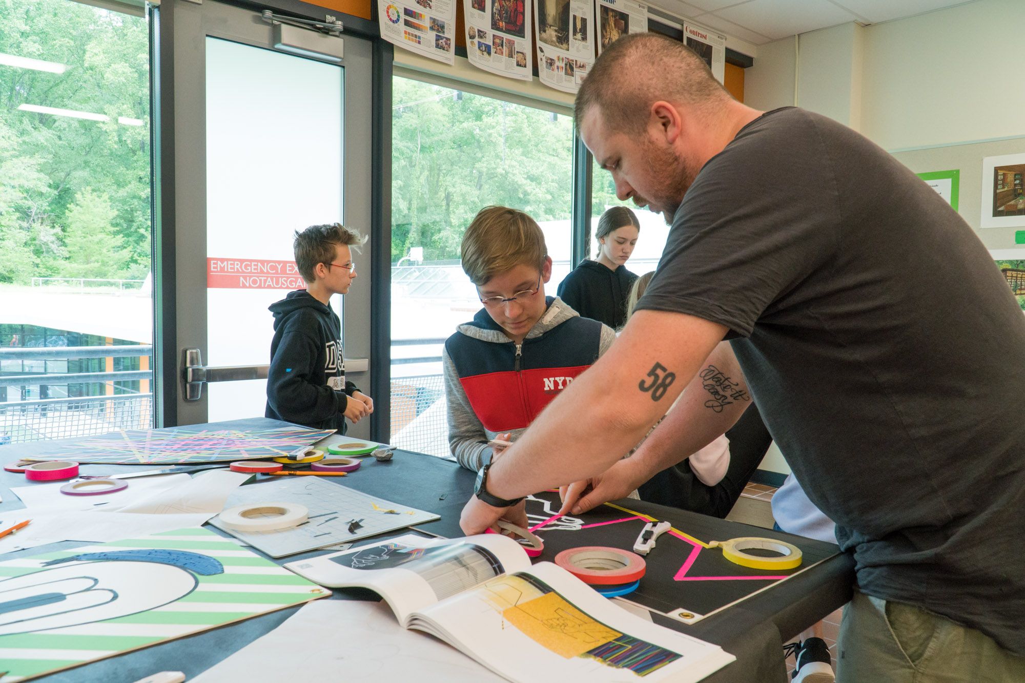 Am Tag der offenen Tür der EU öffneten viele europäische Botschaften ihre Türen für die Öffentlichkeit und gaben einen Einblick in die Kultur ihres Landes. Wir schufen dieses Kunstwerk als Zeichen für die bunte Vielfalt und Einheit Europas. Außerdem gaben wir Workshops an diversen Schulen und konnten so den Leuten Tape Art näher bringen.