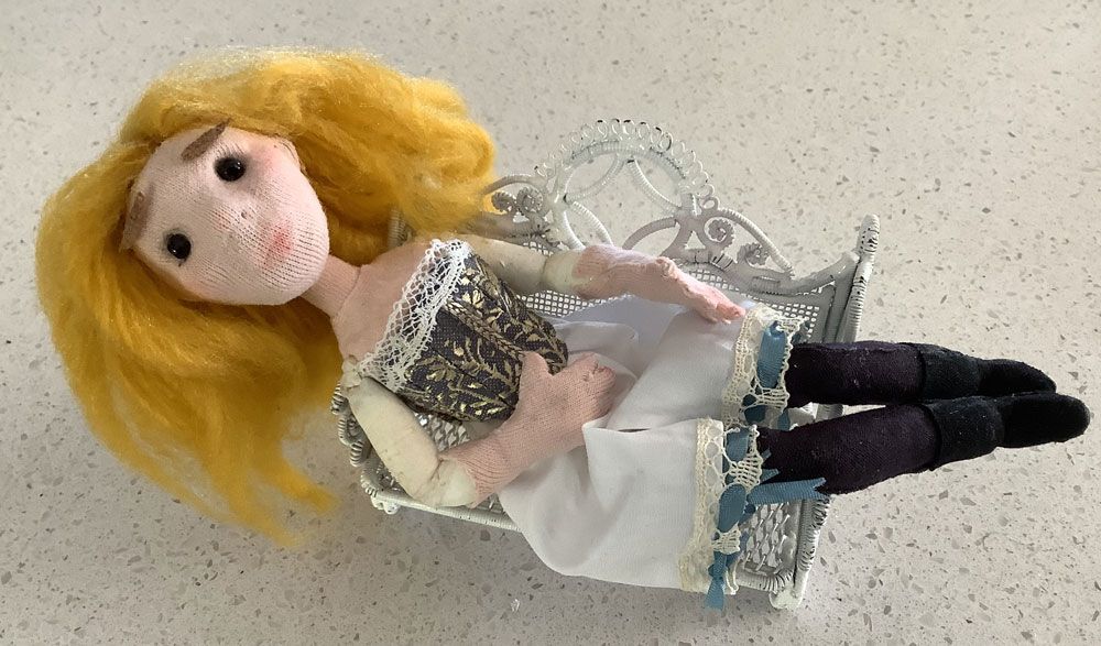 My original concept was to make a waif-like mid-Victorian heroine. While the finished product sort of fits this brief, I'm not happy with her face and would like to redo the head to get a more refined result.