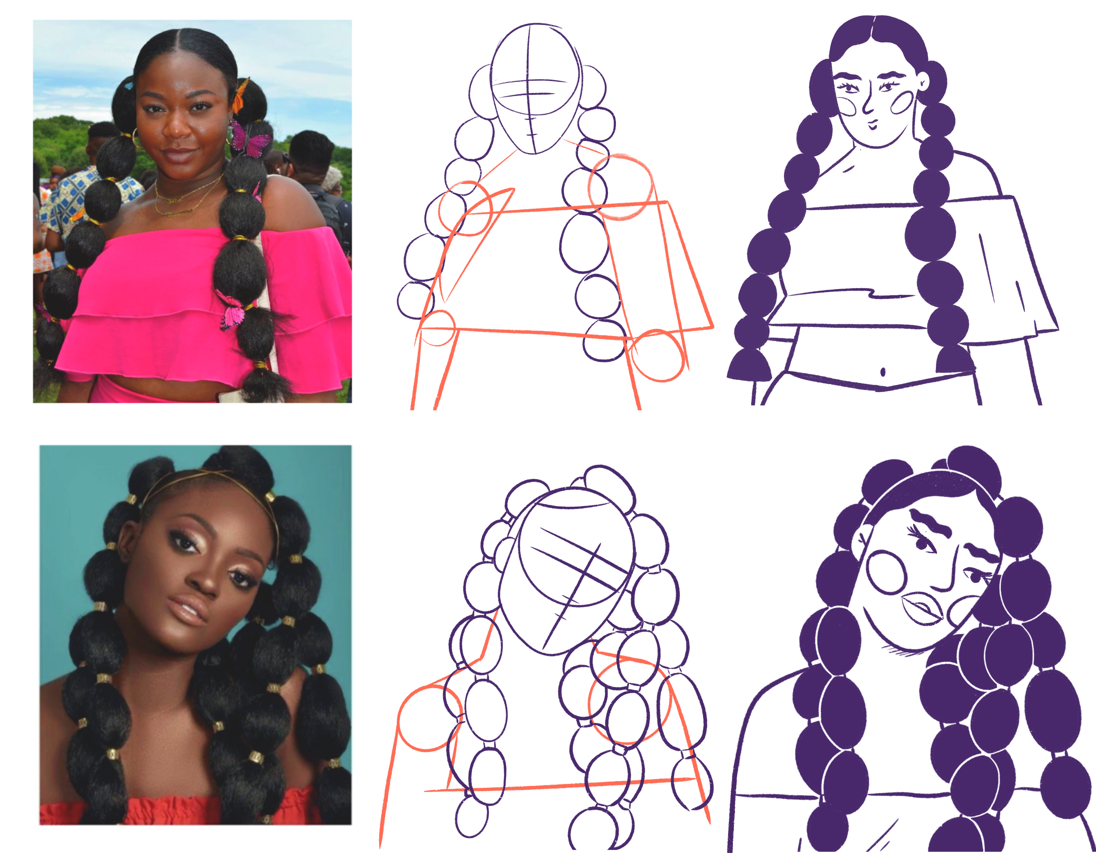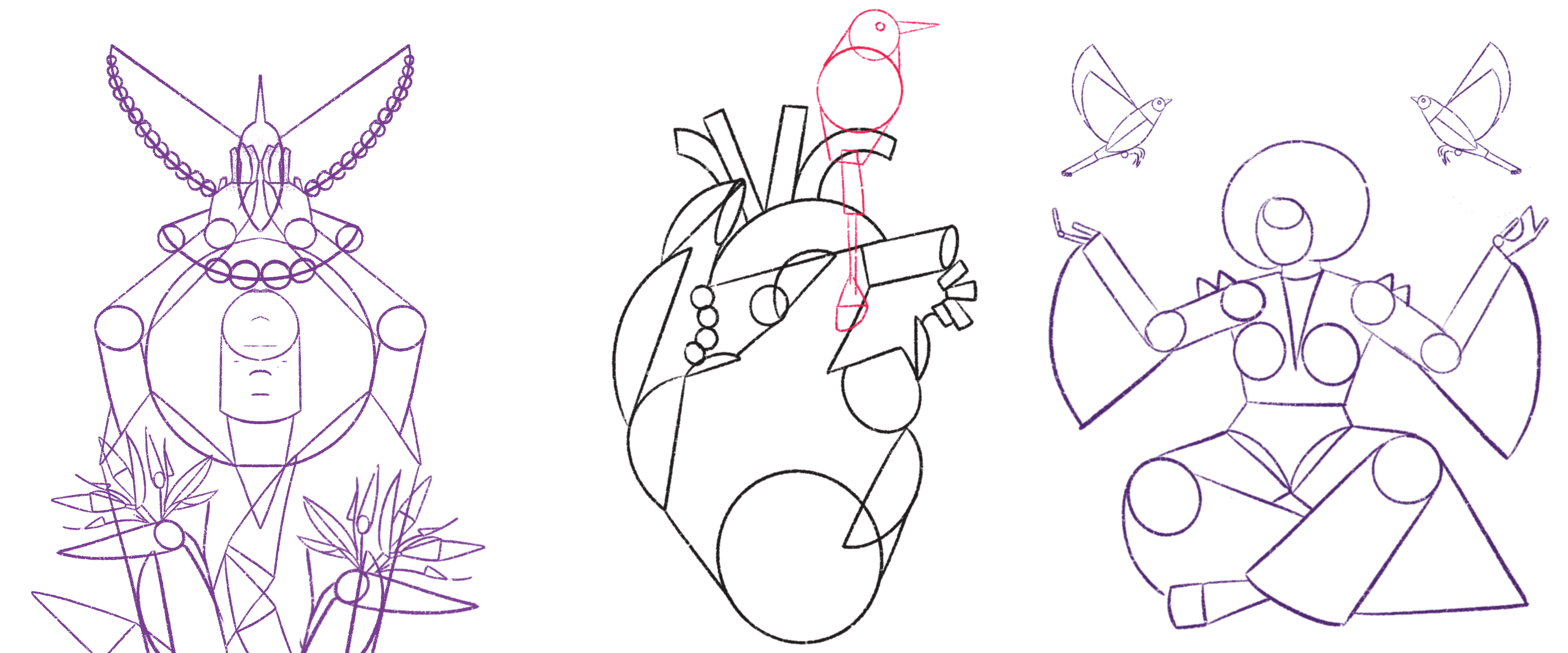 En este tercer paso, quiero compartirles el trabajo de descomposición que realicé pensando en lo que quería ilustrar; y claro, basado en las ideas que junté en el moodboard.