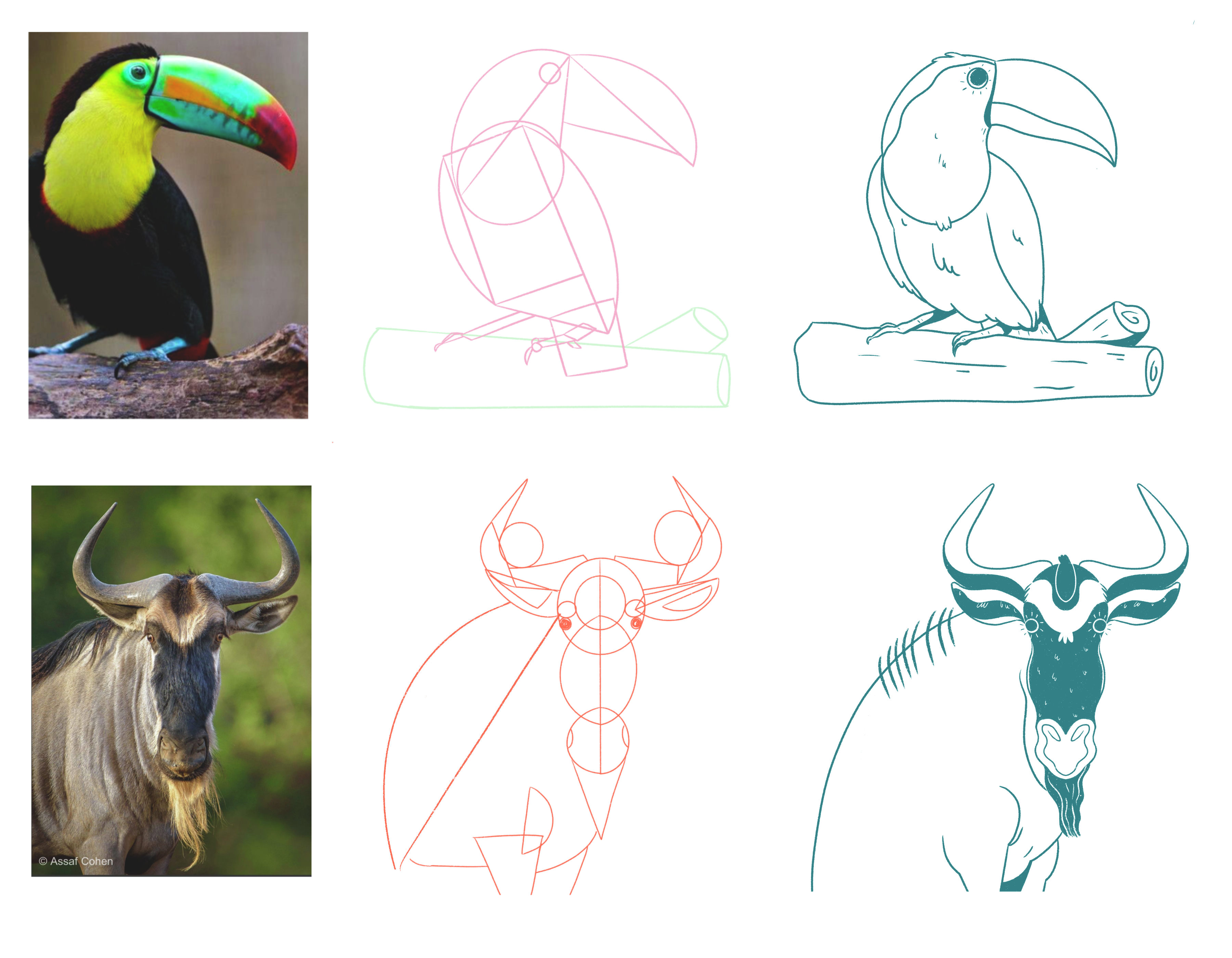 Este ejercicio de descomposición, realmente es la técnica estrella de este curso (personalmente). Me ayudó a darle la proporción real a mis personajes. A veces lo hacía a ojo, pero este ejercicio realmente me soluciona la vida :D
