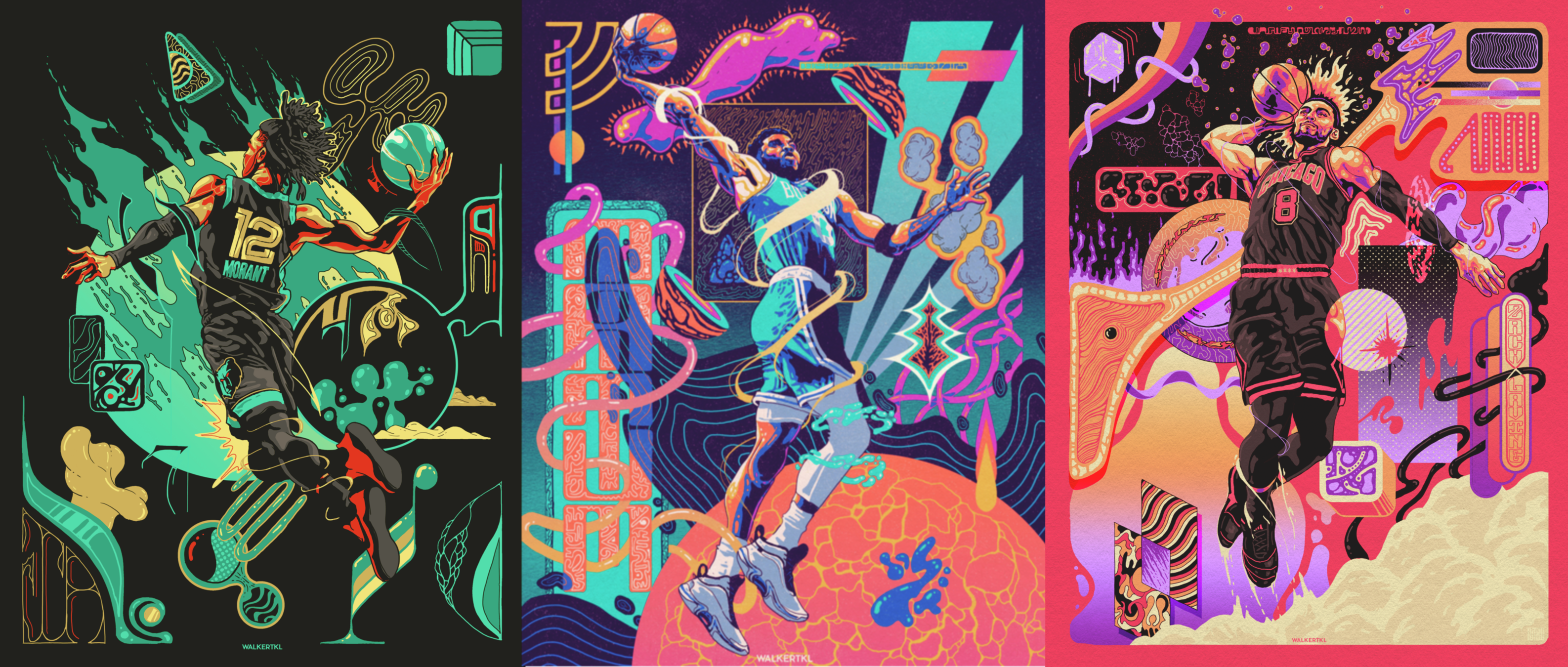 Hace mucho tiempo vengo siguiendo el trabajo de Walkertkl, un artista gráfico de Chicago. Es impecable con la elección de colores, siempre había querido crear algo bajo esta inspiración de color; así que decidí trasladarlas a mis composiciones.